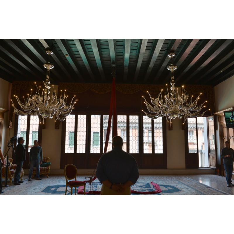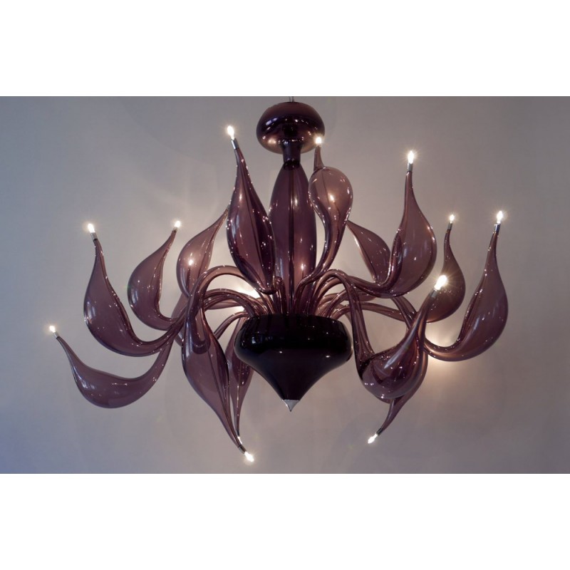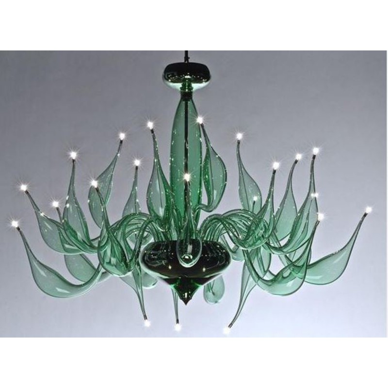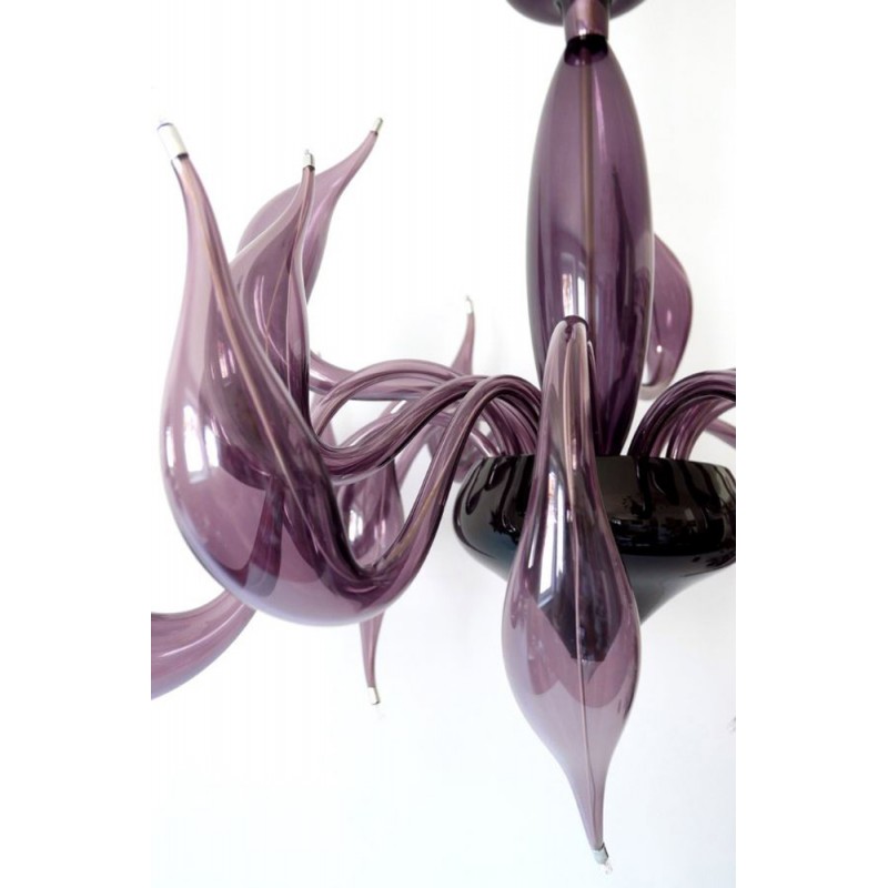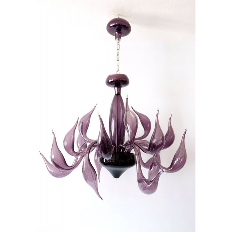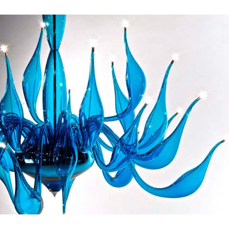 The story behind this amazing Venetian art glass chandelier is steeped in the ancient Murano glassmaking tradition. It results from many years of experimentation, using the same furnaces and techniques as generations of glass masters. Relentless, passionate research and experimentation led these unique creations to reach new levels of elegance and refinement. Those unique chandeliers are entirely handmade and shaped by blowing. They’re fed with oil, completely transparent, and available in different sizes and colors.