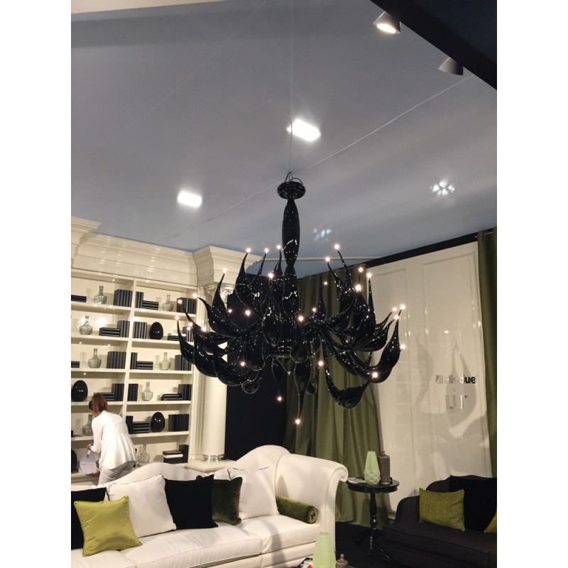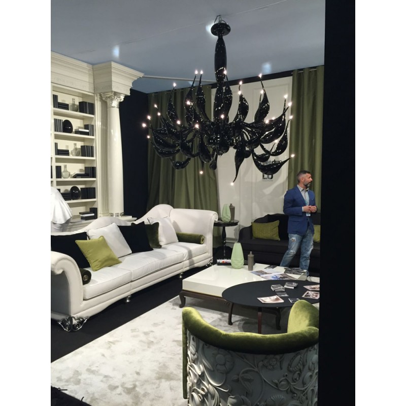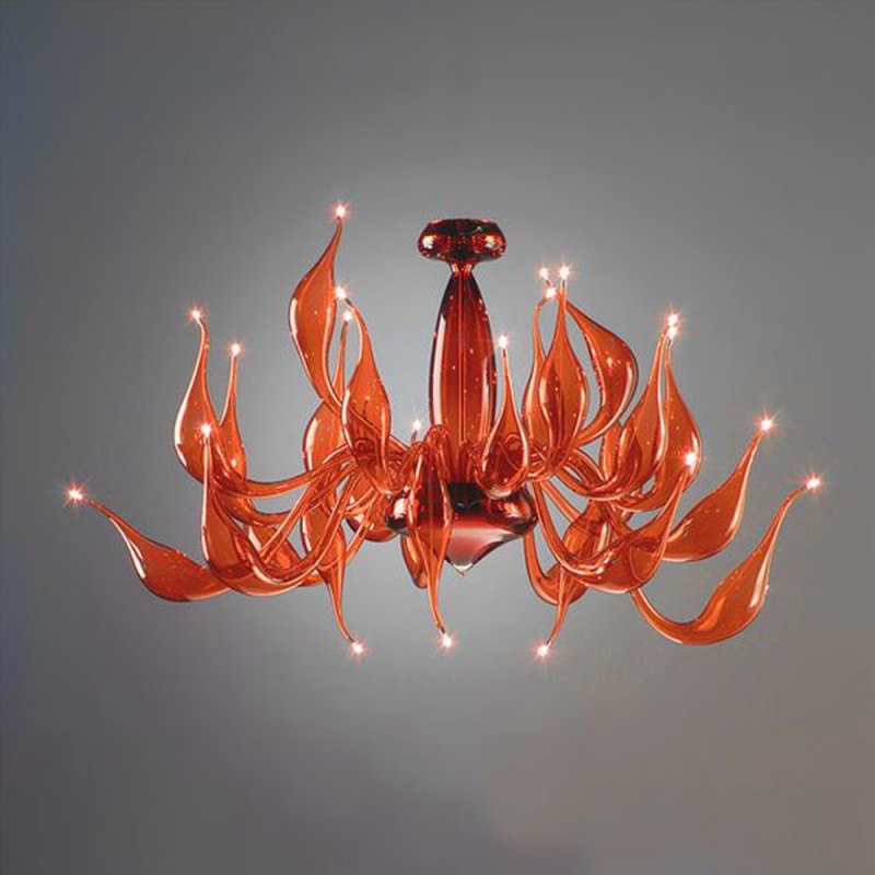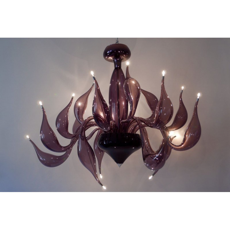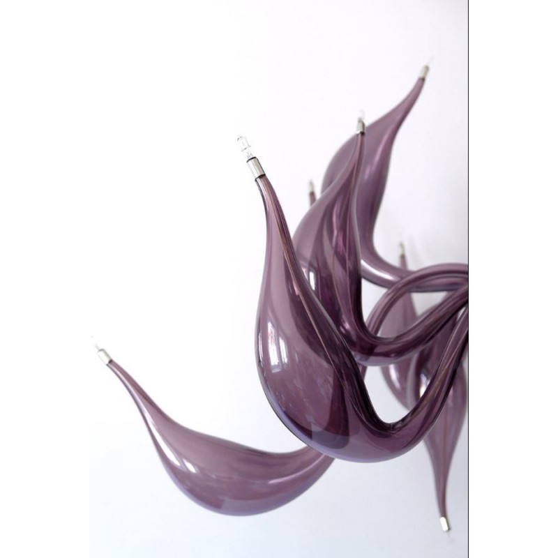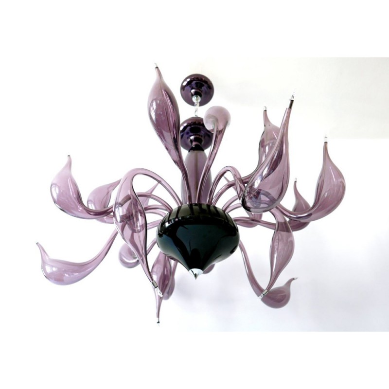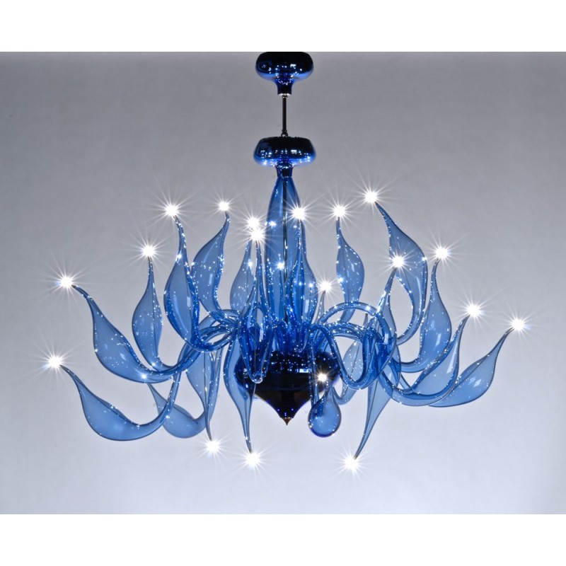 The story behind this amazing Venetian art glass chandelier is steeped in the ancient Murano glassmaking tradition. It results from many years of experimentation, using the same furnaces and techniques as generations of glass masters. Relentless, passionate research and experimentation led these unique creations to reach new levels of elegance and refinement. Those unique chandeliers are entirely handmade and shaped by blowing. They’re fed with oil, completely transparent, and available in different sizes and colors.