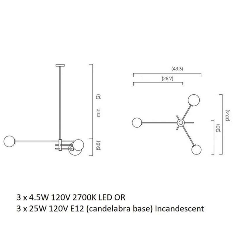 Bulbs: 3x 4.5W 120V 2700K LED lamp; 3 x 25W 120V E12 (candelabra base) Incandescent lamp