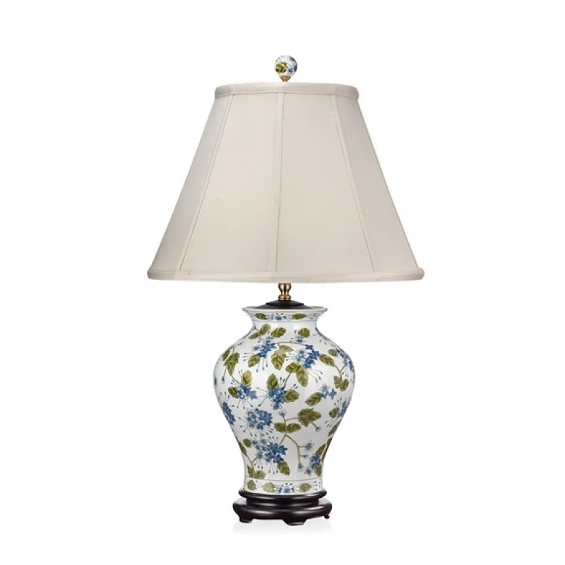 QZ9134 BLUE FLOWER AND GREEN VINE PORCELAIN LAMP