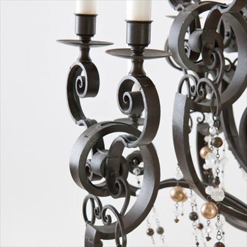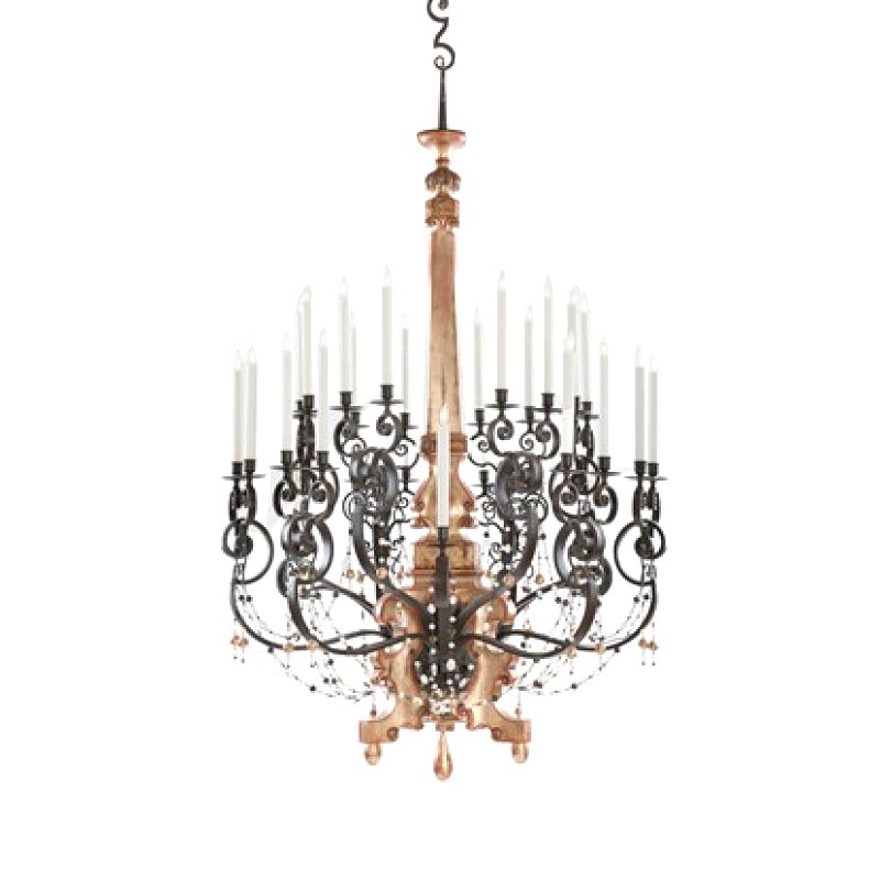 Designed and built to illuminate classic surroundings or to create a strong contrast in modern surroundings. Its design recreates the uniqueness of an object from another era, however reviving it in a modern way with the addition of faceted rock crystal beads with gilded wood balls and drops. This series reached the peak of its beauty in the French Gold version. In fact, the lamp body is made completely of aged iron finish and platinum gilt on hand carved wood. This process, detailed and complex, is carried out by Italian craftsmen, true masters of a tradition that has been handed down for generations.