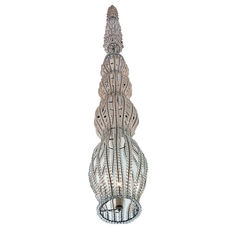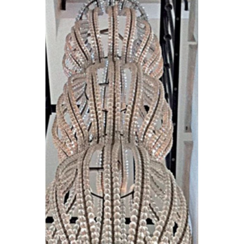 In the tradition of the lustriers, from the end of the 17th century, the sewing of pearls is one of the favorite arguments of the art of luxurious lighting. Traditional techniques of lightning do not let themselves be confessed by the formal evolutions of the new lighting. Here, the stitching of crystal beads still inspires the creator, who knows how to simplify it to draw an effective poetic object. It takes up a recurring theme in classic lighting: water games and fountains that have so much inspired the decorative arts, especially in the 1920s. The simplicity of crystal pearl drops refreshes the theme and dresses the tube light fluorescent while diffusing it. No frills, like a designer gesture, these chandeliers have the modernity for asset, while remaining objects of tradition.