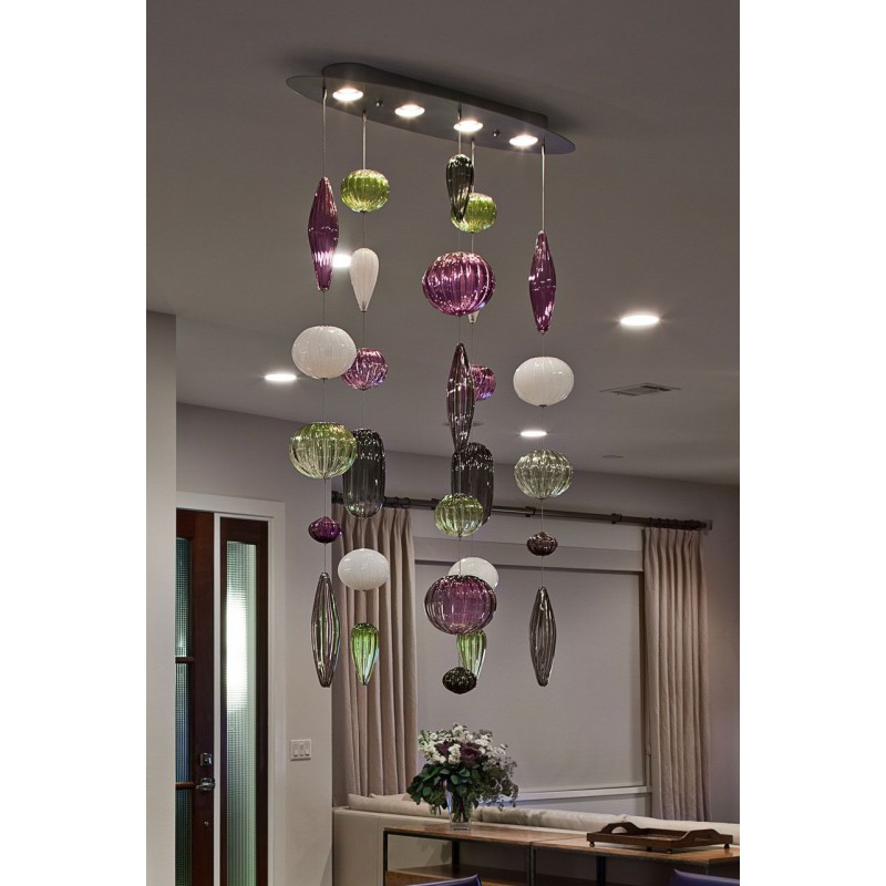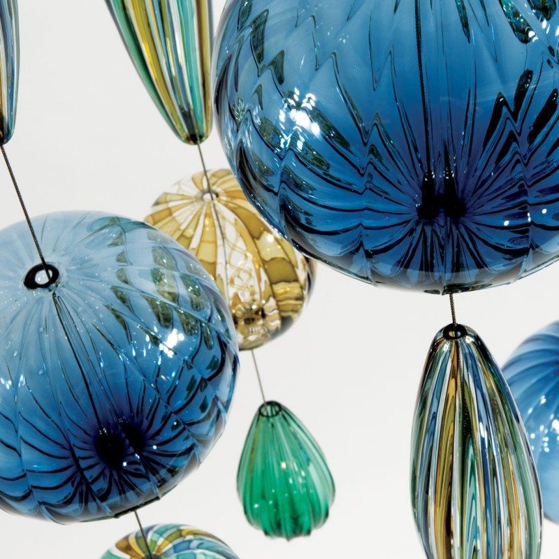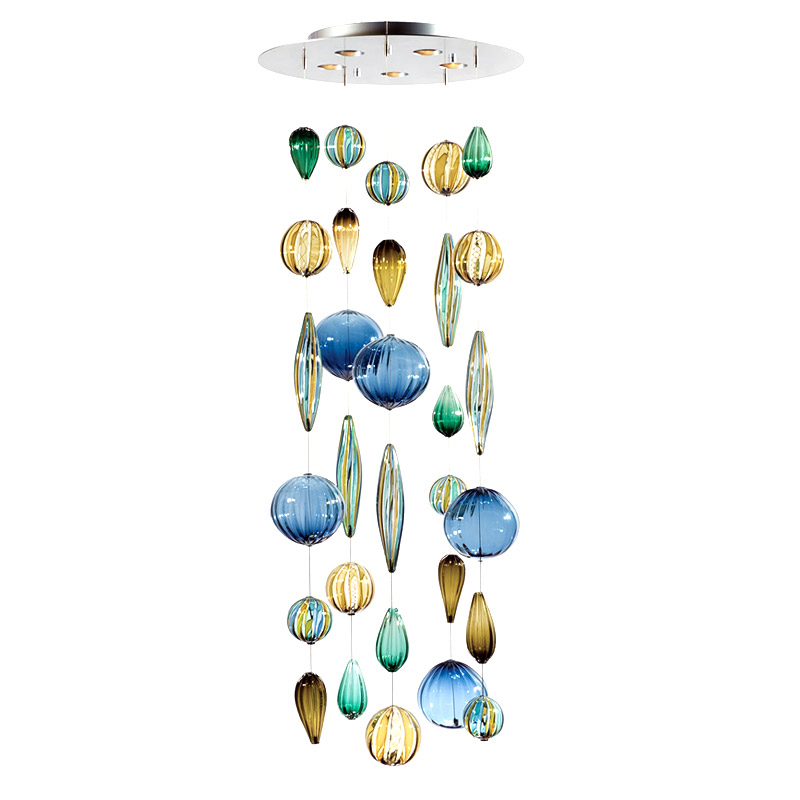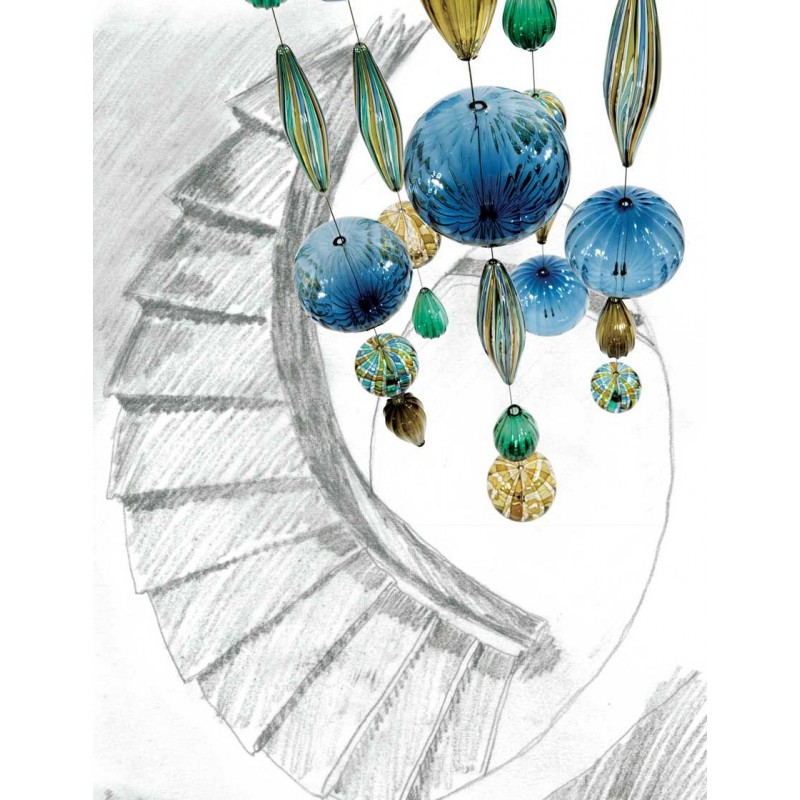 A beautiful modern chandelier featuring a mix of Striped and Ribbed beads. Limitless combinations allow one-of-a-kind installations. The key to an elegant, opulent, bespoke design is to understand the aspirations of the client, the relevance of location, and maximizing the potential of the existing elements in the space.