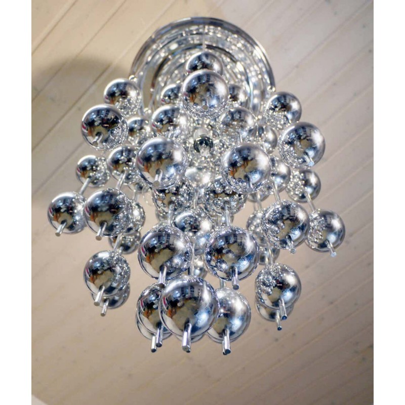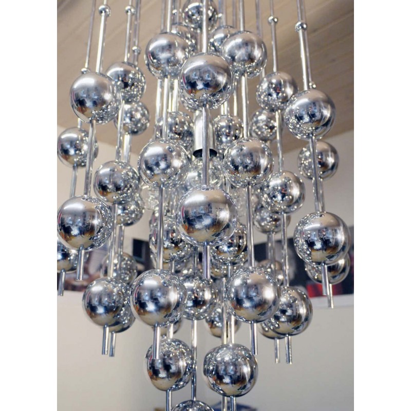 The METALLIC BALL Chandelier is a ‘Ball’ chandelier, designed 1970 formed from a series of chromed metal balls suspended from steel rods. At Alan Mizrahi Lighting Design, we supply and manufacture many highly sought after designer pieces. All chandeliers can be customized by a number of lights, style, color and size to meet your specific needs. Every chandelier can also be combined with a matching table lamp and wall lamp to accomplish the best room design. Our company provides collections that can make all your project dreams come true….