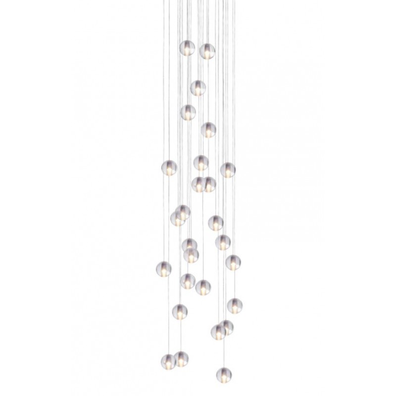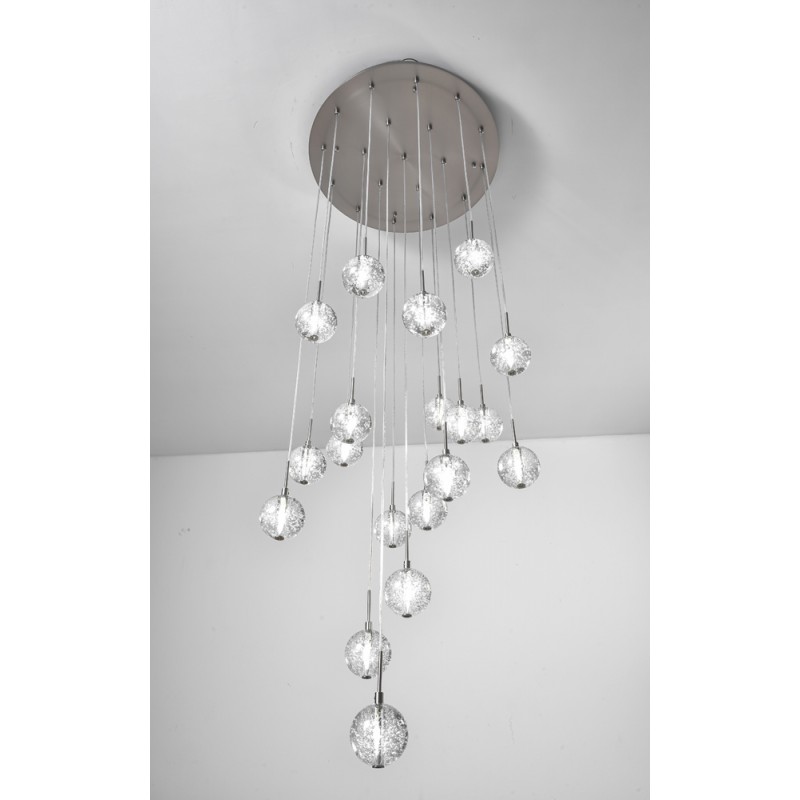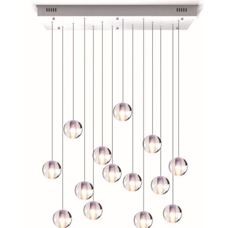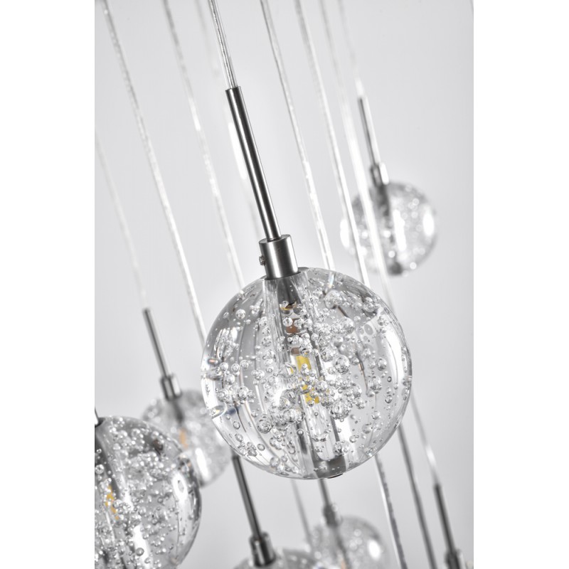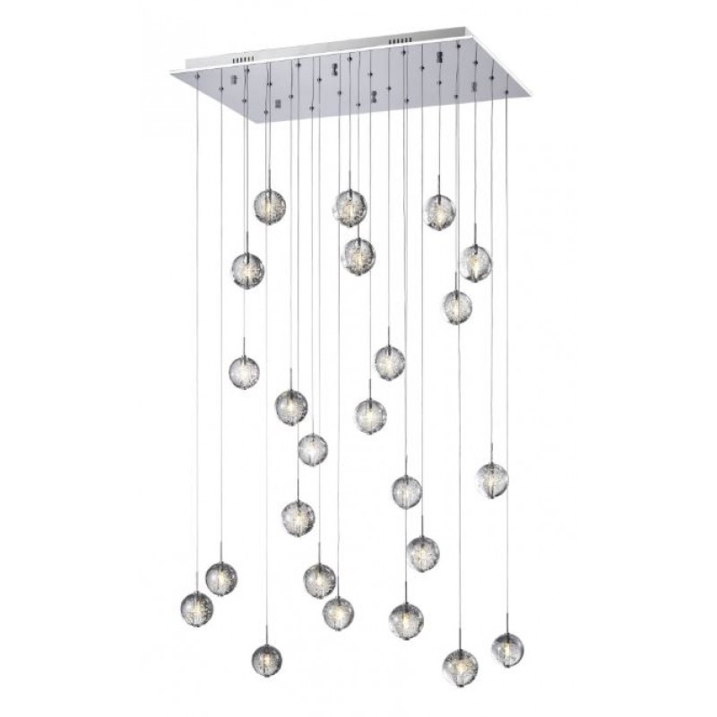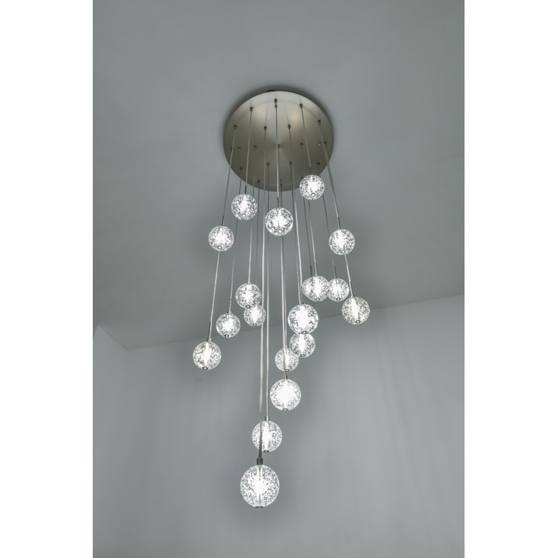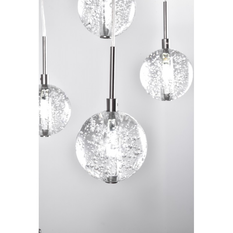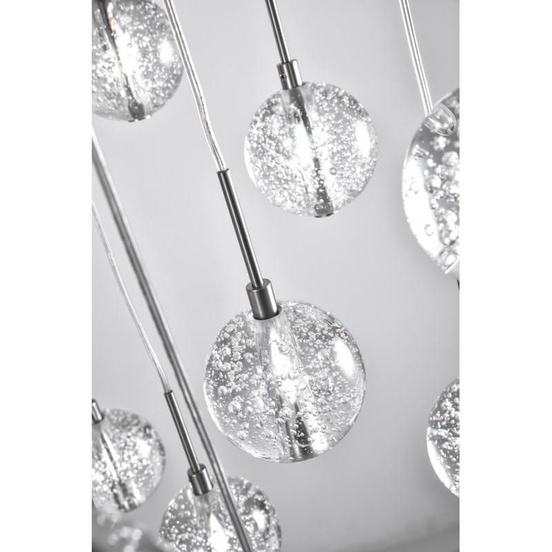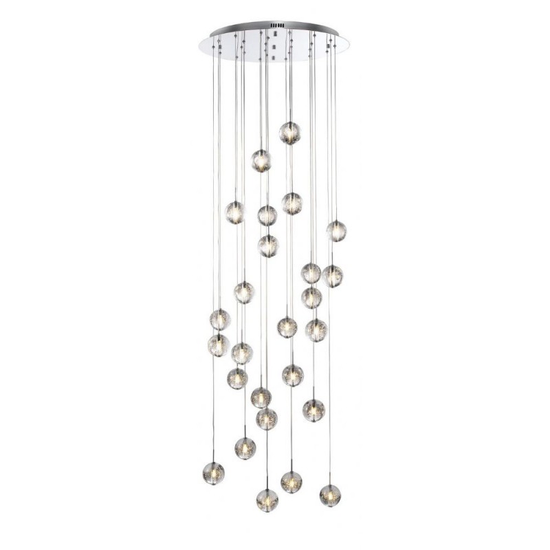 The SJ2093 Bubbles 26 Light Pendant is in a chrome finish with beautiful heavy glass Bubble balls. The Bubbles are sure to make a truly spectacular feature in any contemporary home. At Alan Mizrahi Lighting Design, we supply and manufacturer many highly sought after designer pieces. All Chandeliers can be customized by a number of lights, style, color and size to meet your specific.