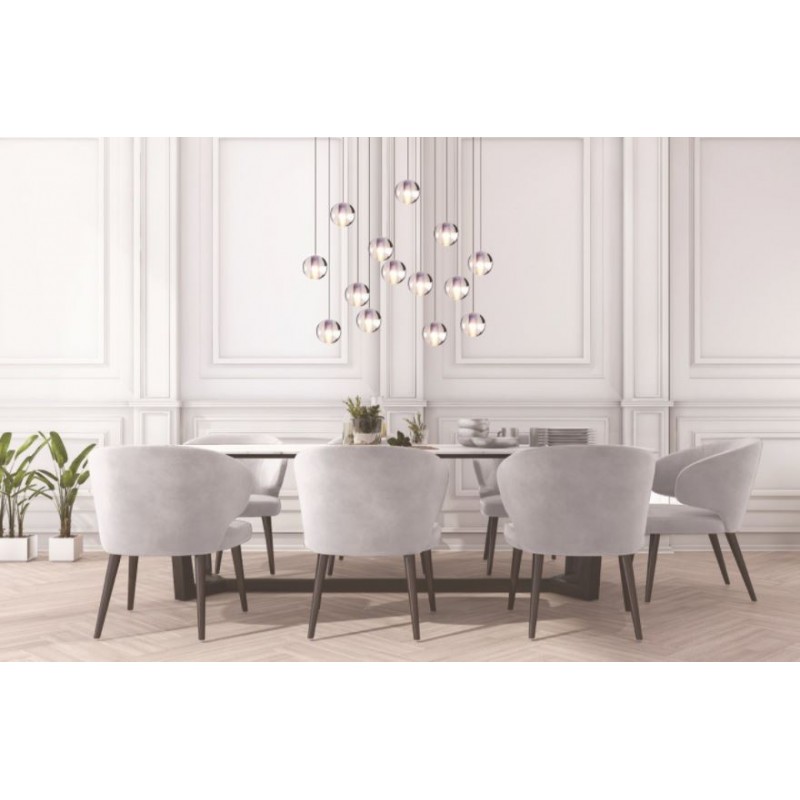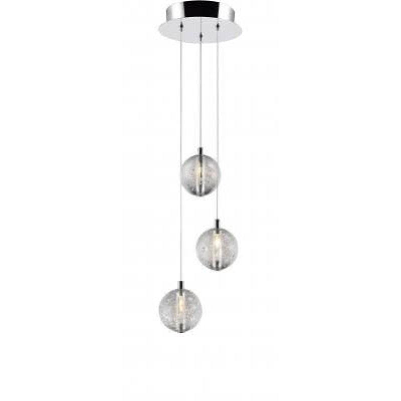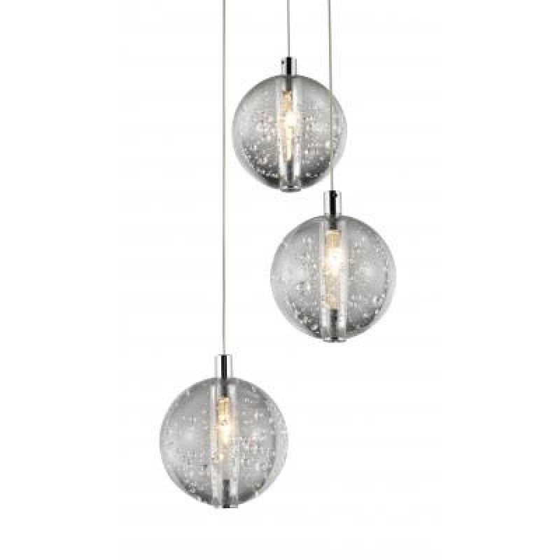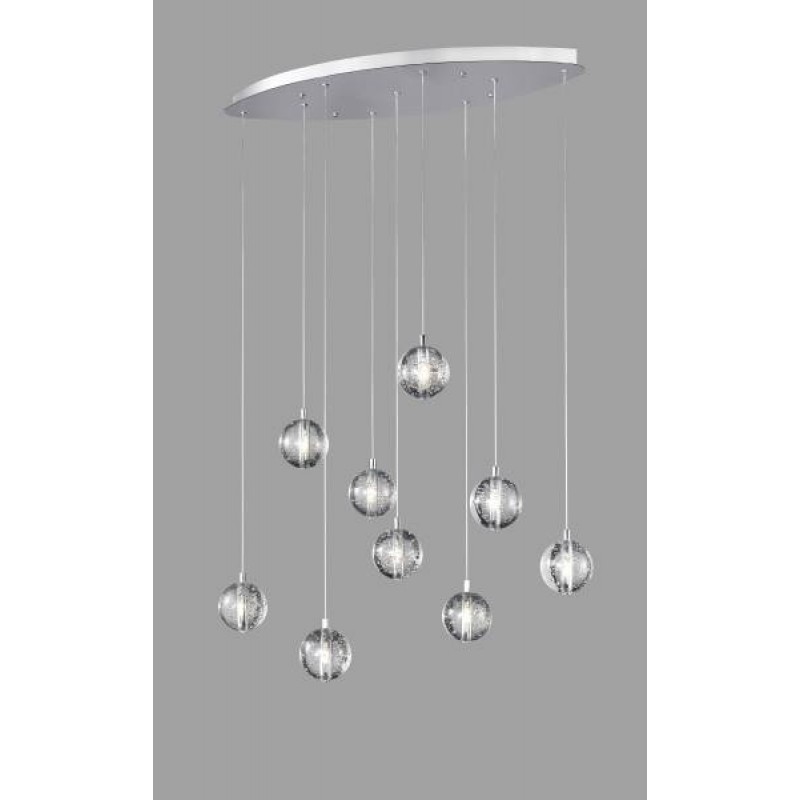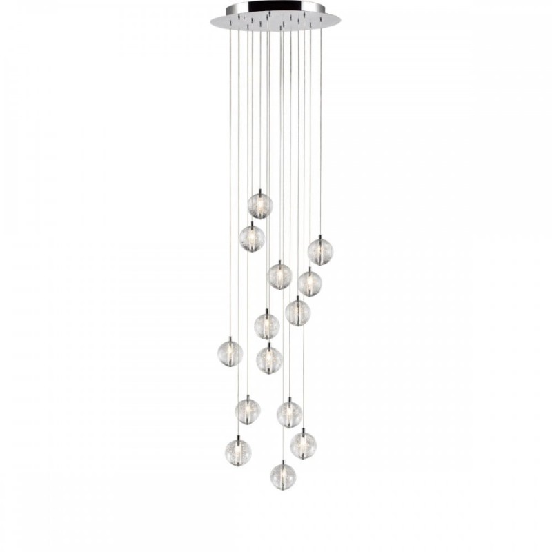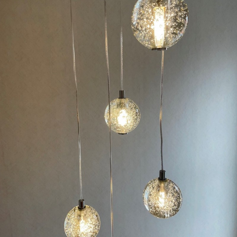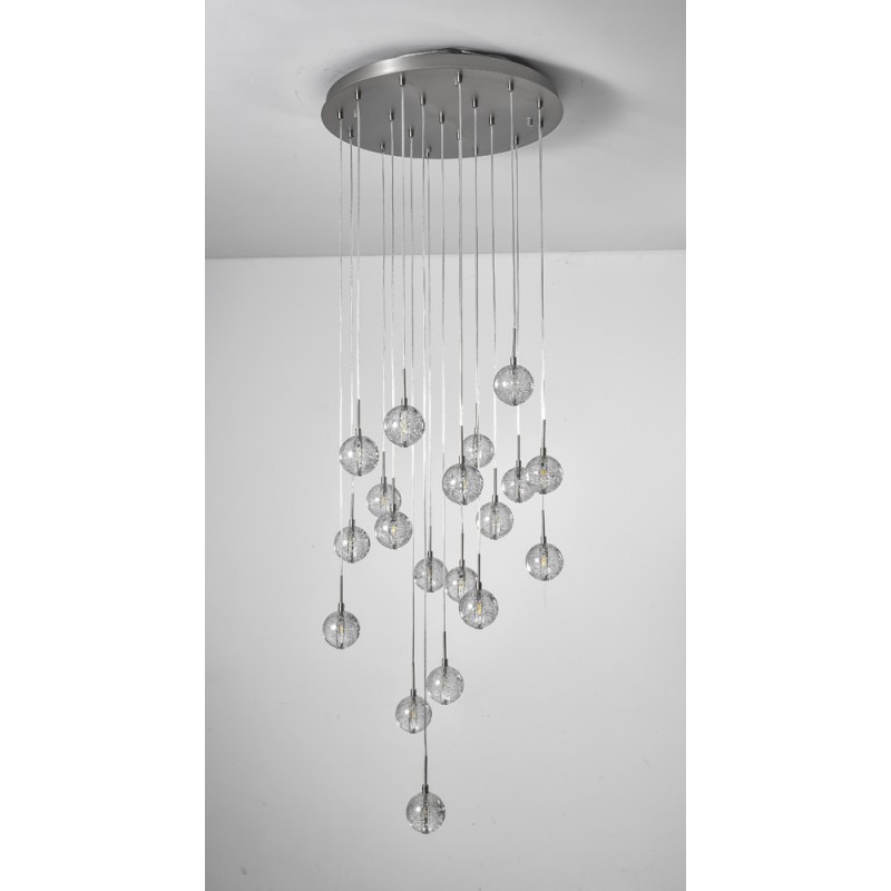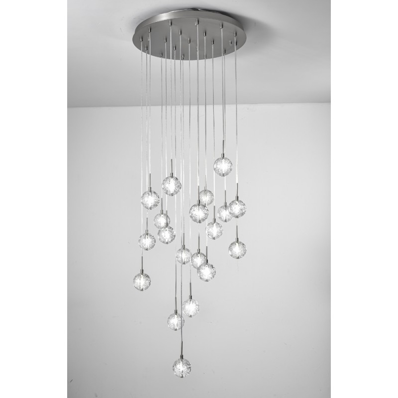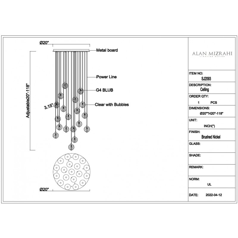 The SJ2093 Bubbles 26 Light Pendant is in a chrome finish with beautiful heavy glass Bubble balls. The Bubbles are sure to make a truly spectacular feature in any contemporary home. At Alan Mizrahi Lighting Design, we supply and manufacturer many highly sought after designer pieces. All Chandeliers can be customized by a number of lights, style, color and size to meet your specific.