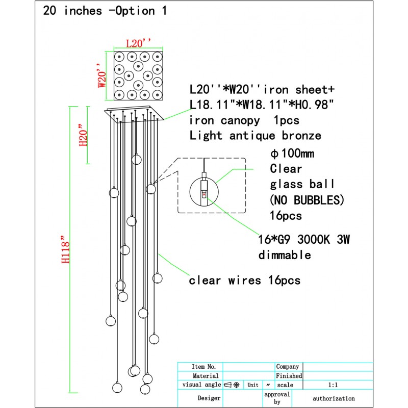 20” Length x 20” Width x 118” to 240” Height (16 Light)