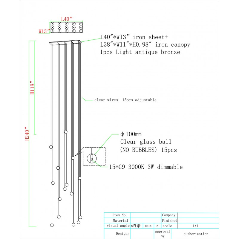 50” Length x 15” Width x 118” to 240” Height (40 Light)