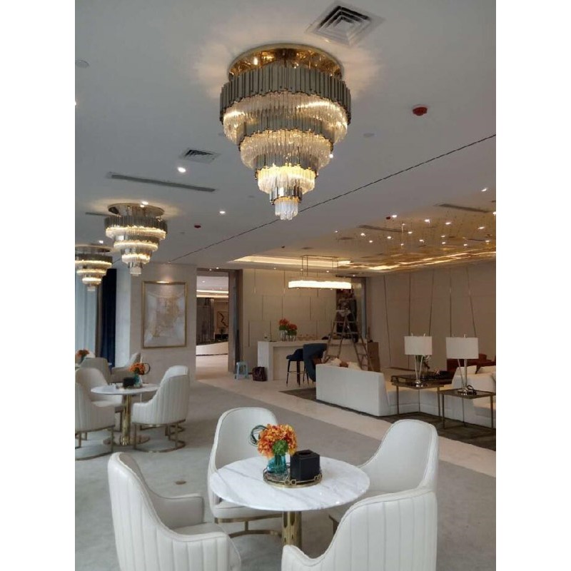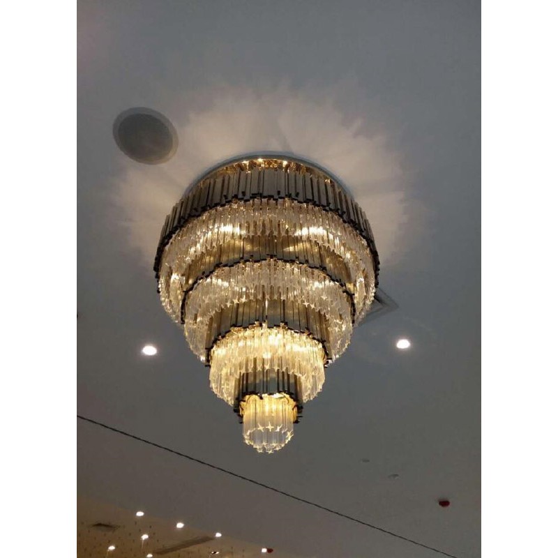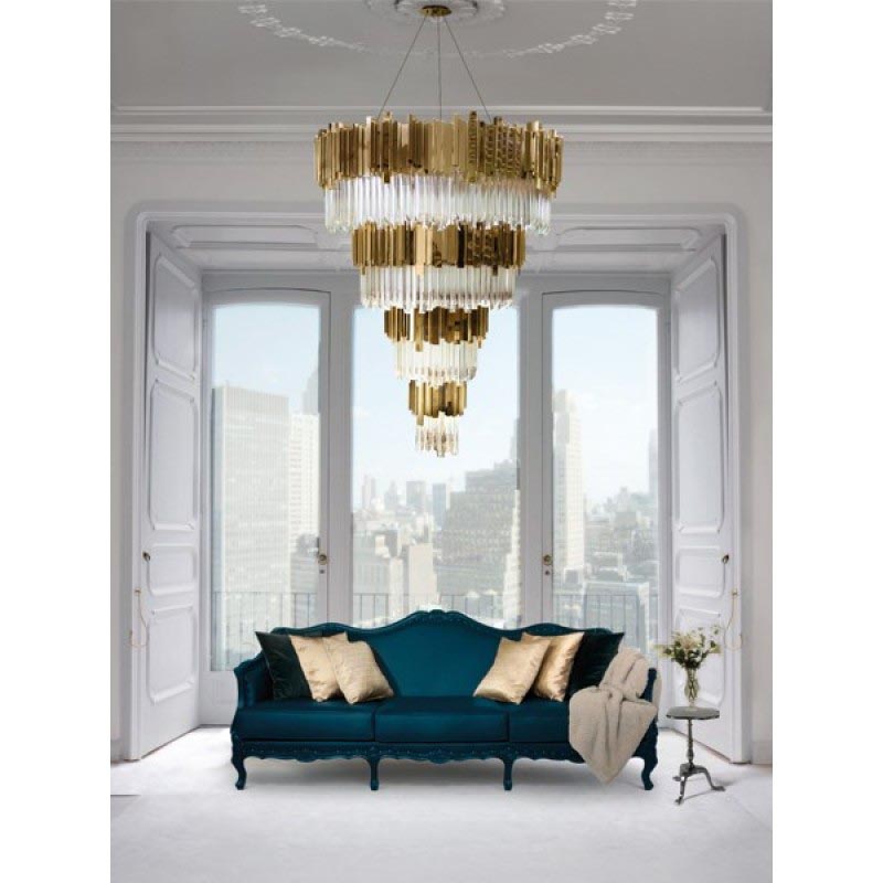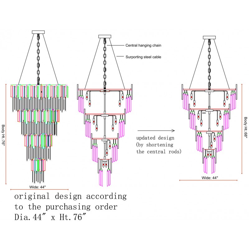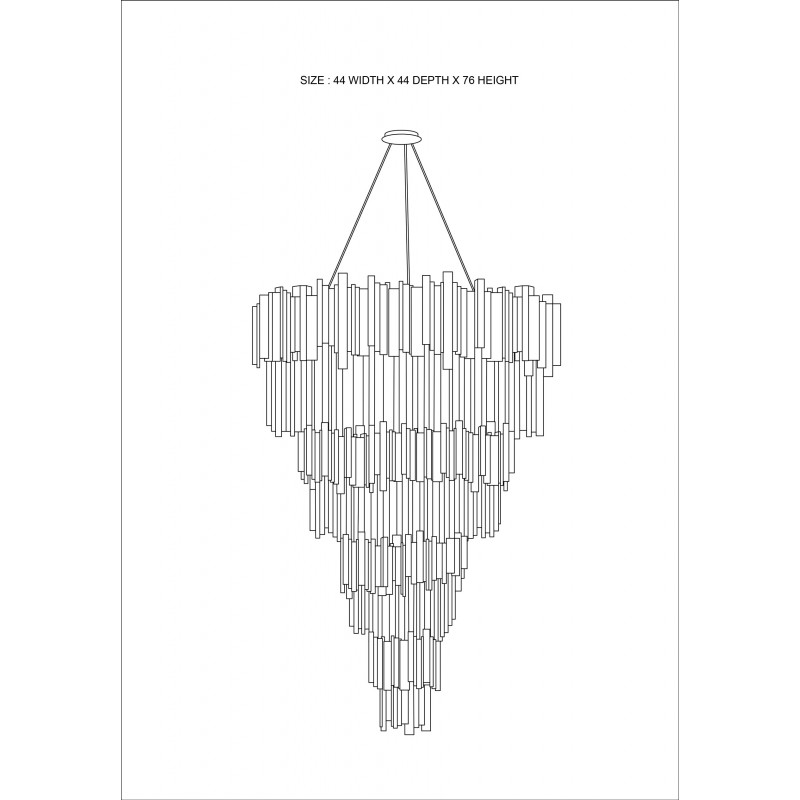 Elevate your space to new heights with this "Empire" Chandelier. This beauty is inspired by the iconic Empire State Building and is nothing short of a masterpiece in and of itself. Its extravagant shape is packed full of modernity and can transform every space into the stunning space it's meant to be. These pieces combine classic forms with modern appeal, delivering the finest in your lighting and decor needs. In addition to providing an outstanding piece, we are also able to create this piece in whatever size, color, and finish you need. Let this show-stopper be the fixture that stops them in their tracks today