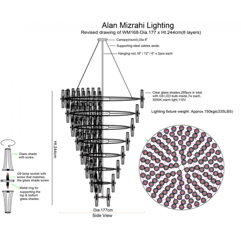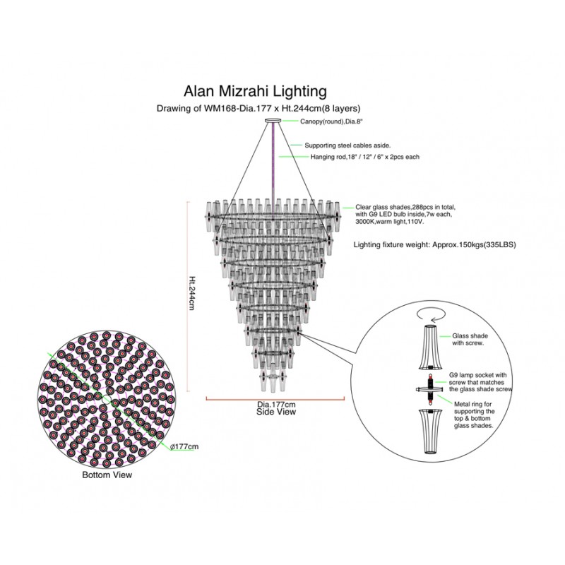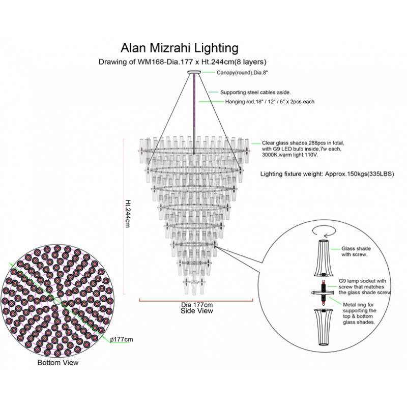 Lights: 70 x g9 Halogen Bulbs (40W max)
