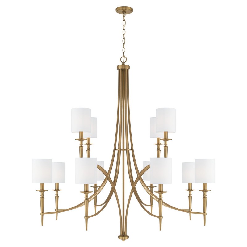 Straight edges and striking curves add layers of drama to the Abbie 12-Light Chandelier. The candlestick detailing in Aged Brass brings a glamorous nod to this updated design. Because our lighting is made by a workforce that still relies on traditional working methods, each product is unique and carries with it the sensitivity of the artisan.