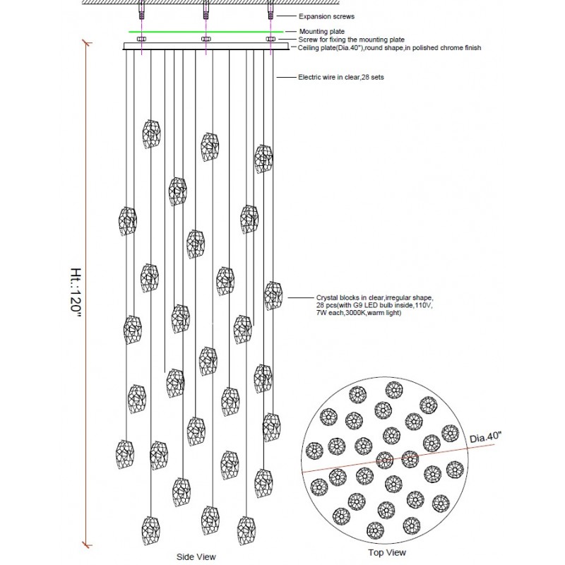 Lights: 36 L110V USA/220V Europe 40 Watt halogen Gi6 bulbs (included)