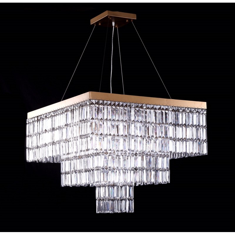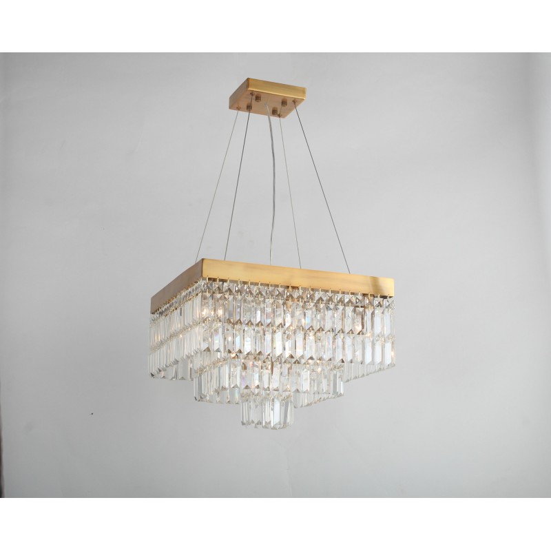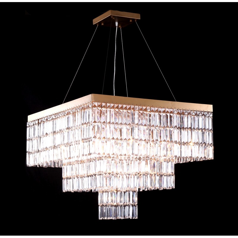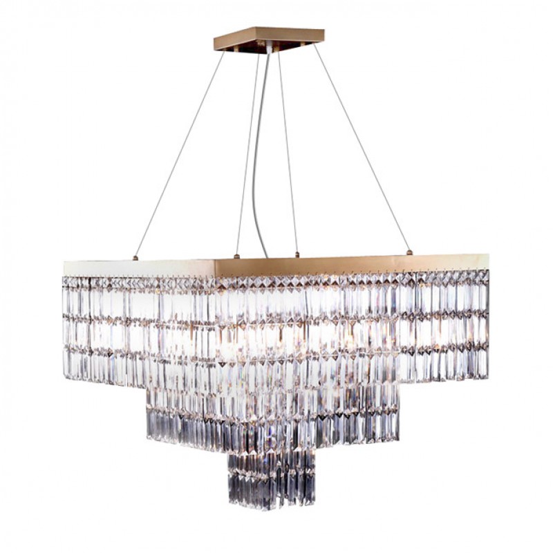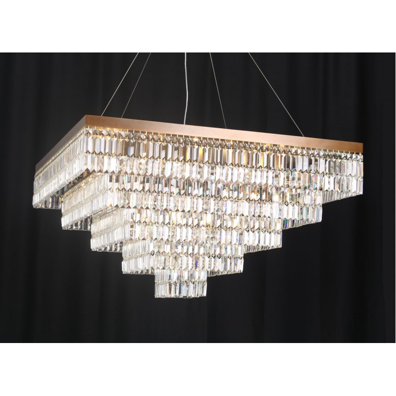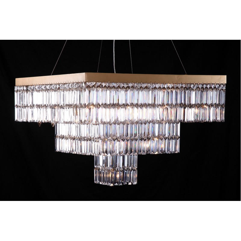Meld the finest of fixtures into your space effortlessly with this wonderful contemporary, square chandelier that is embellished flawlessly with small, baguette crystal across each side. The fusion of the fixture's modern shape, blend of elegant crystals and dark finish place this piece into a very, smooth, luxurious category of its own. This fixture features 3-5 floors of gorgeous clear crystals and, is sure to look amazing in nearly any room, venue or other location.
