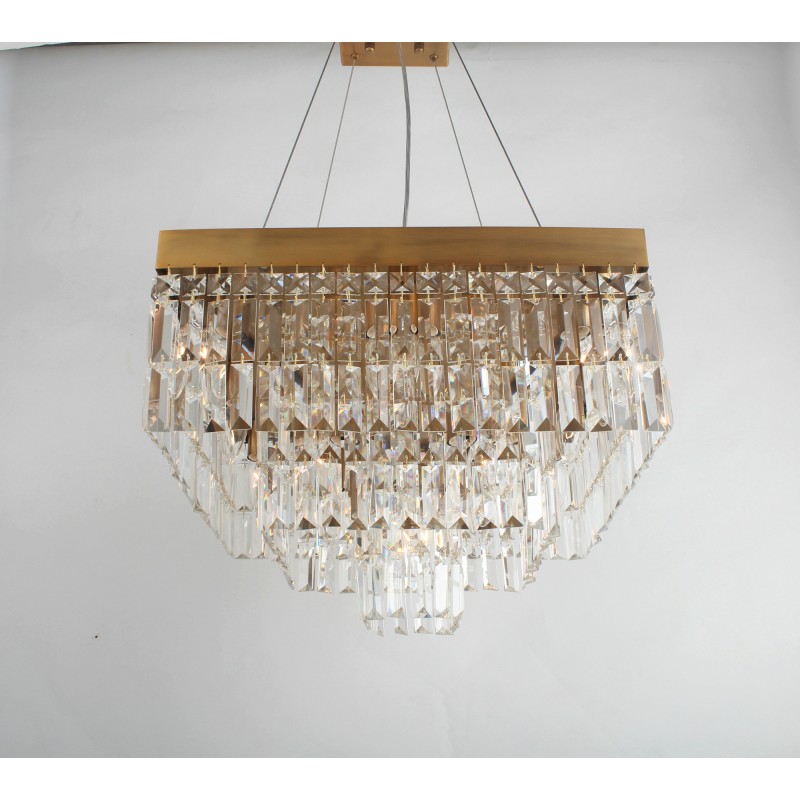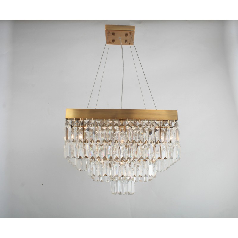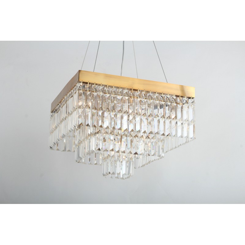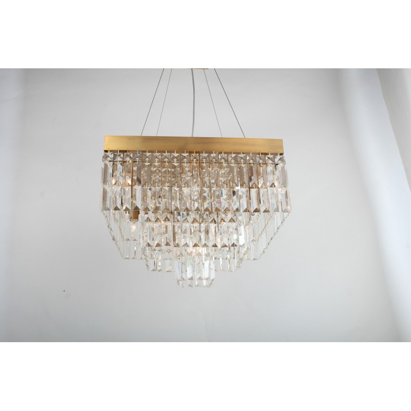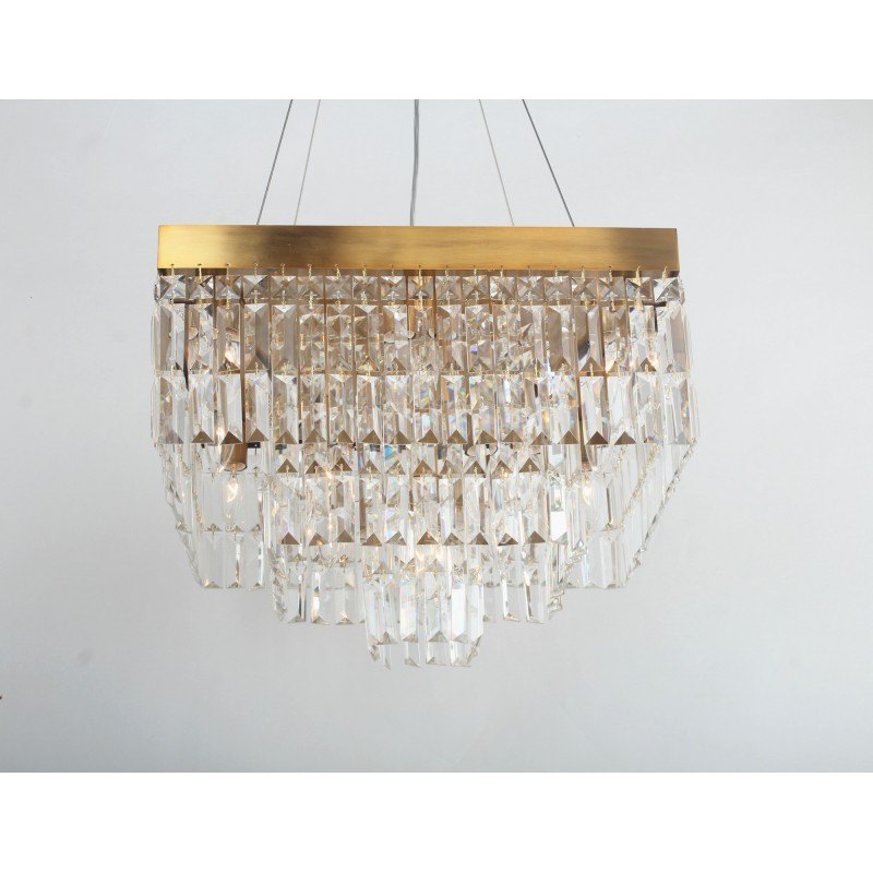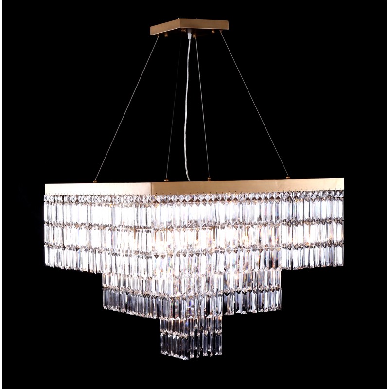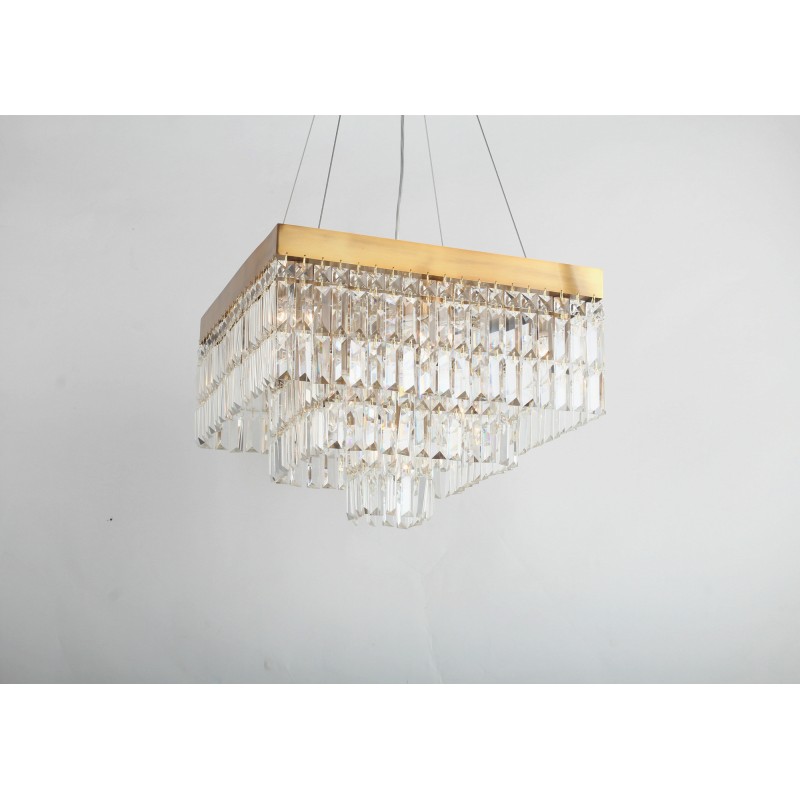 Meld the finest of fixtures into your space effortlessly with this wonderful contemporary, square chandelier that is embellished flawlessly with small, baguette crystal across each side. The fusion of the fixture's modern shape, blend of elegant crystals and dark finish place this piece into a very, smooth, luxurious category of its own. This fixture features 3-5 floors of gorgeous clear crystals and, is sure to look amazing in nearly any room, venue or other location.