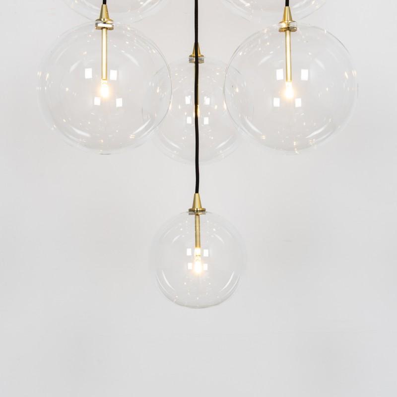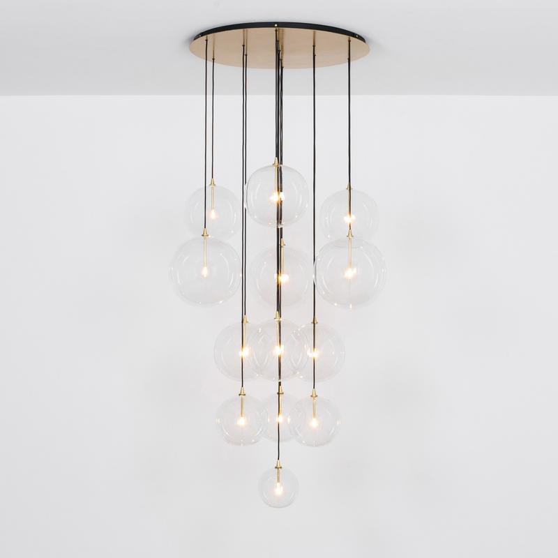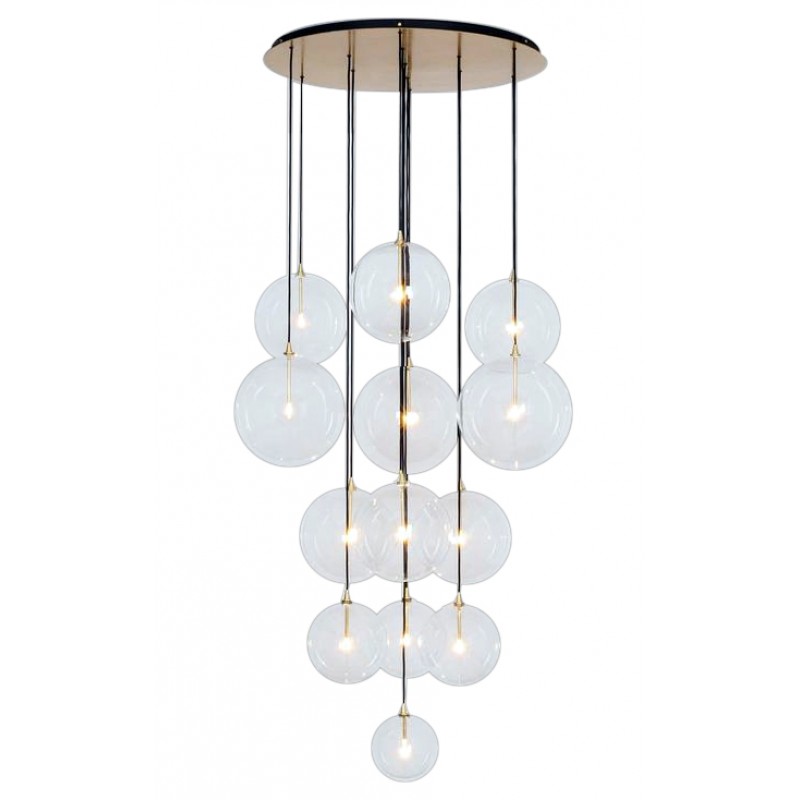 The 13 light Cluster Chandelier is a modern ceiling light made of solid brass with mouth blown glass globes. This is the perfect contemporary light fitting to make a statement in your home or commercial property. The workmanship and quality is of the highest standard. This comes in three different finishes and can be altered to your required height.