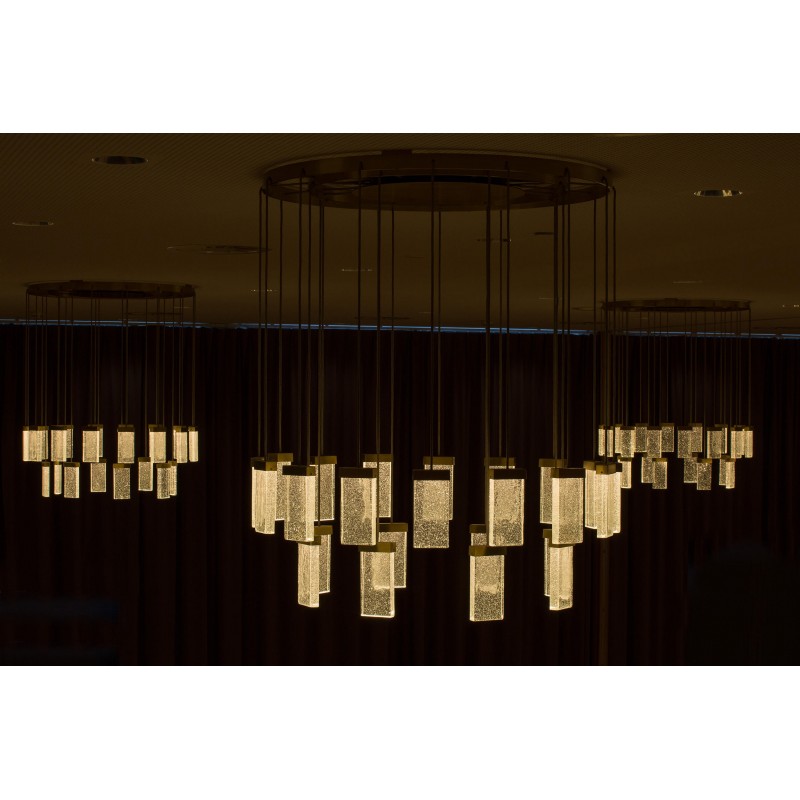 The GRAND CRU elemental lighting – is the brand name and synonym for a new generation of decorative lamps and functional lights, suitable for scenographic use in architectural contexts or as decorative lighting. Minimalist design and timeless aesthetics make each MASSIFCENTRAL light fitting a born classic which retains its value. Depending on the light color, or combination of solid mineral glass with natural gas resembles either sparkling water or bubbly champagne and has become the distinctive feature of our unique products.