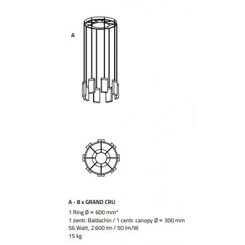 24” Diameter x 60” Height (8 Pendants, 33 Lbs.) (1 ring) $3,780.00