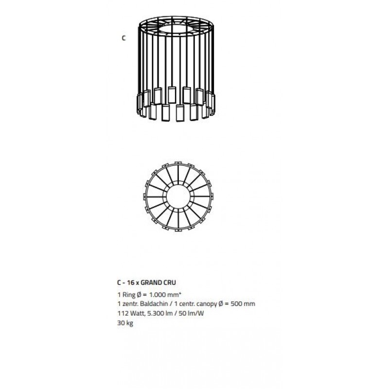 40” Diameter x 60” Height (16 Pendants, 66 Lbs.) (1 ring) $5,944.00