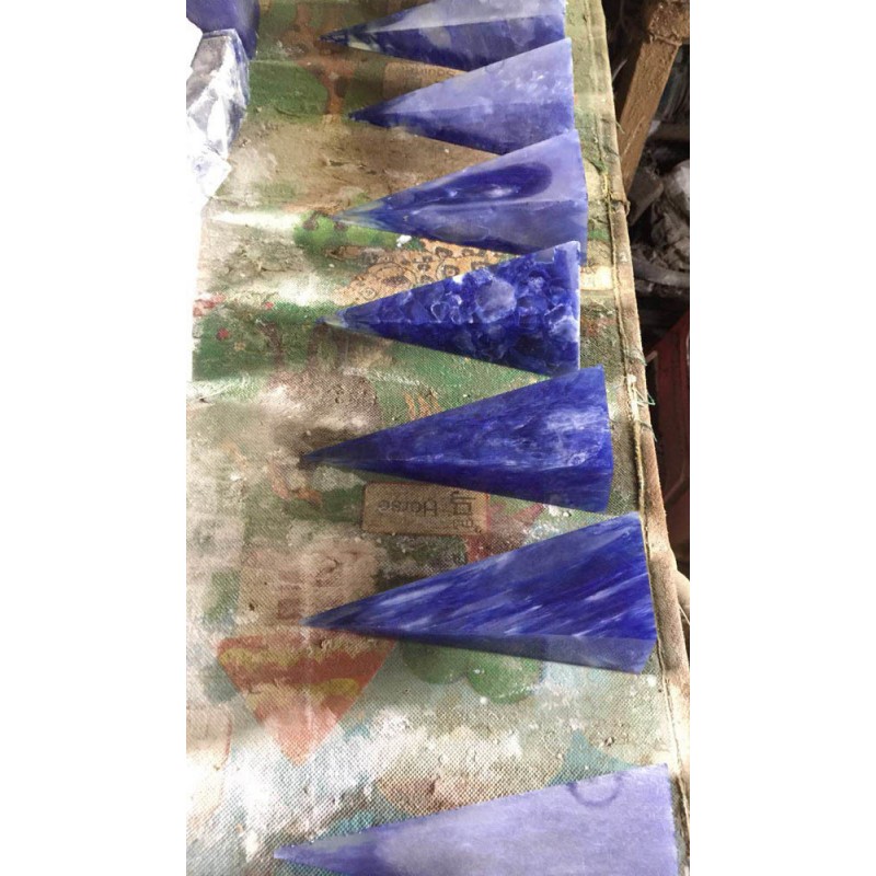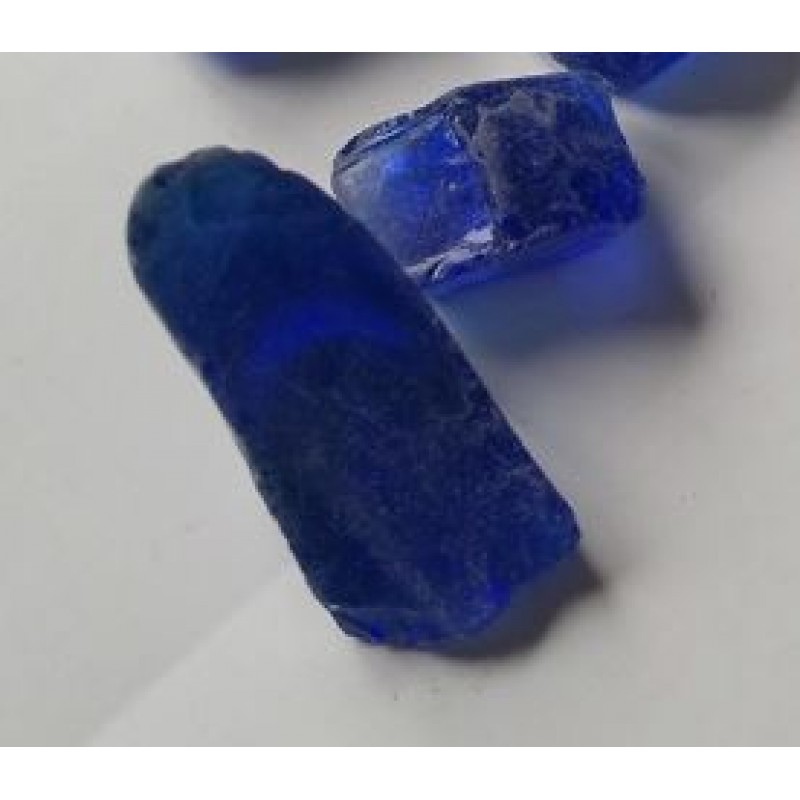 The blue variety of Quartz, which is uncommon in nature, is seldom used as a gemstone. Most "Blue Quartz" is clear Rock Crystal irradiated with gold to from a deep sky blue color. Blue Quartz may also refer to a dull grayish-blue Quartz in massive form with Crocidolite inclusions.