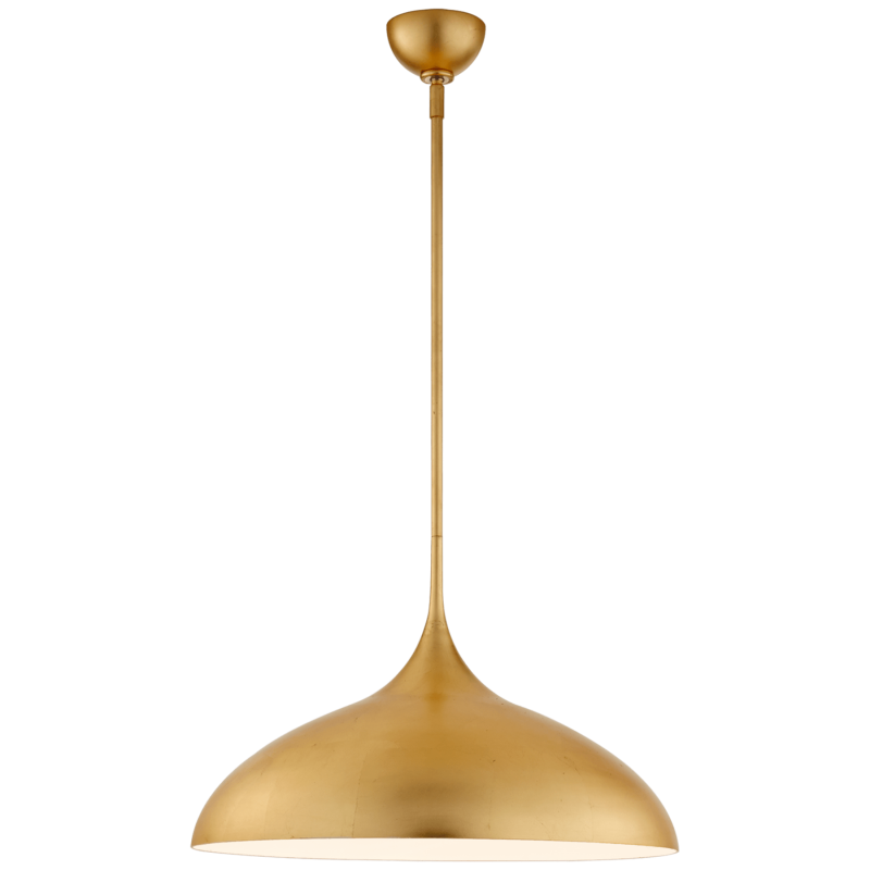Elegantly finished in gleaming gold, this brass pendant flaunts a slender neck and flared shade full of retro flair. Hardwired.The Agnes Large Pendant provides convenient glare-free lighting in a sleek, minimalist package.