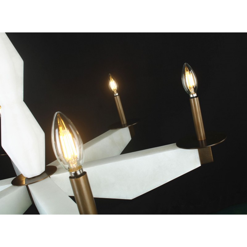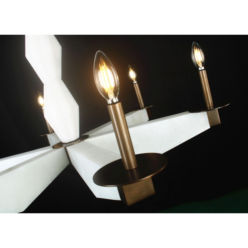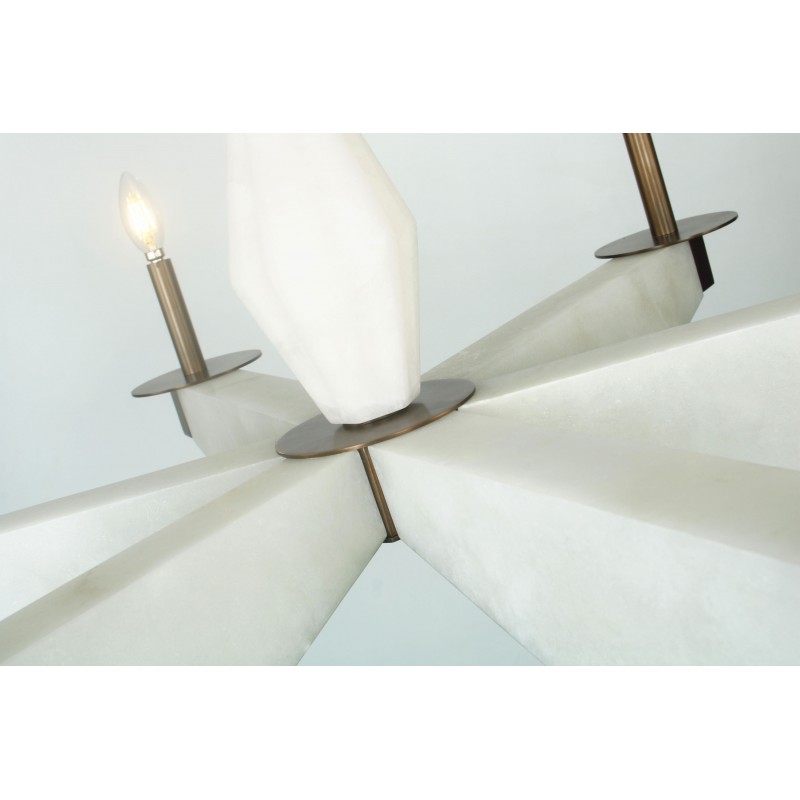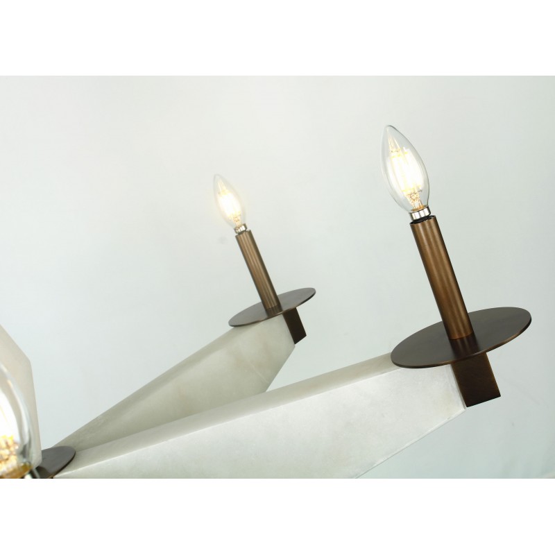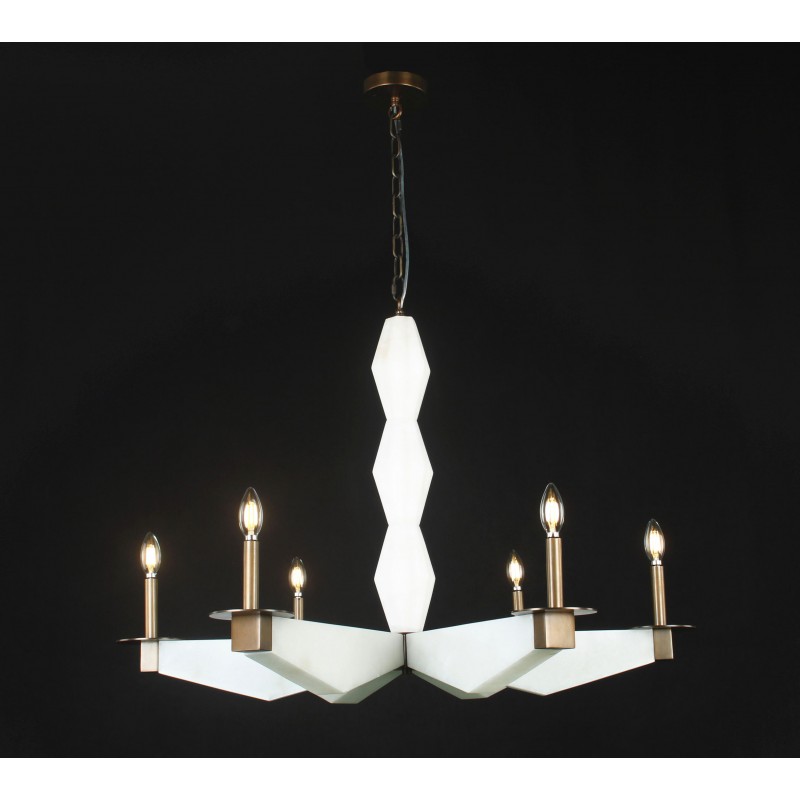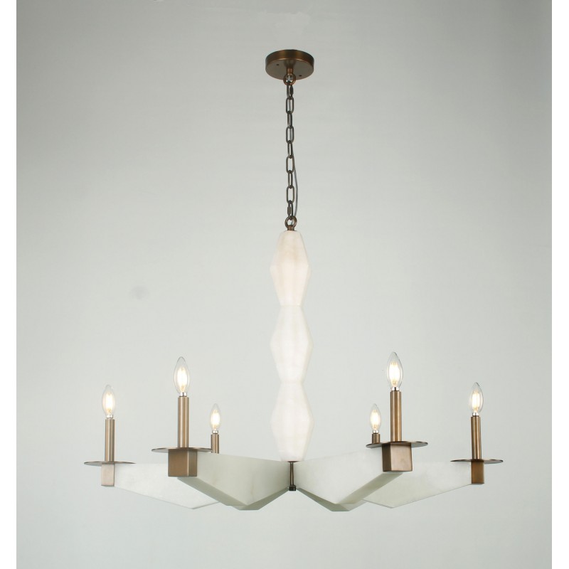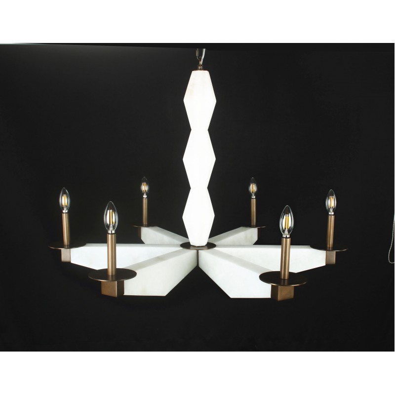 A rare and sculptural six-light chandelier with alabaster arms and bronze finis, that provides a soft and warm light giving a romantic ambiance. A fusion of beauty and functionality that could fit in many settings and venues. Emanating glamour from top to bottom with its white alabaster. Large or small, our team can meet the challenge.