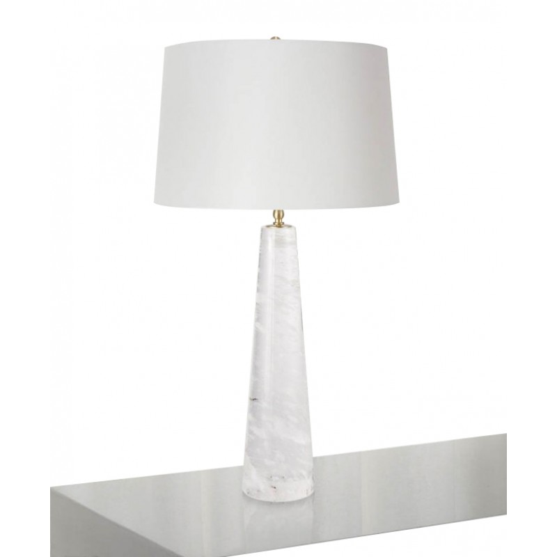 Designed with modern minimalism in mind, this 33" table lamp brings understated style to your space as it lends a light. Crafted of crystal, its narrow base strikes a tapered silhouette with a glossy solid finish for essential versatility. A short and wide fabric drum shade sits up above and gives this slender design a bit of body, spanning 18" in diameter to evenly distribute light from a single 100W medium-base incandescent bulb (included). We hope to bring this joy to you and your environment as we ultimately believe that good design should make the world around us a more beautiful and harmonious place to live. Dramatic lighting is fully customizable and tailored to fit your space perfectly. “Odessa” is a sleek and ultra-modern interpretation of the chandelier.
