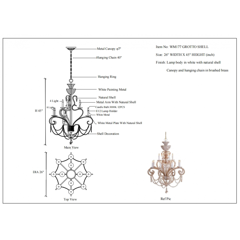 Lights: Requires 12 x 25 Watt Candelabra Bulbs (Not Included)