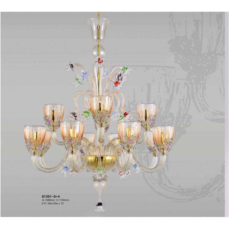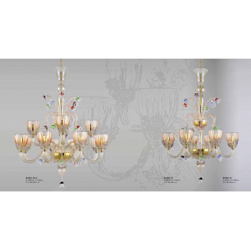 AM81391 TOSCANA VENETIAN GLASS 8- ARMS CHANDELIER
