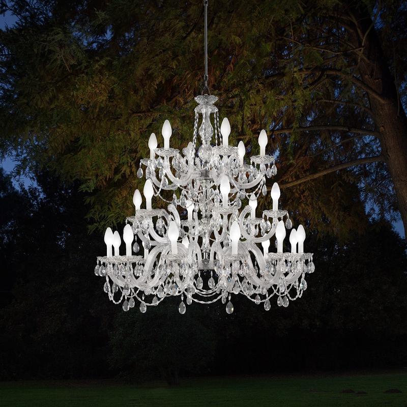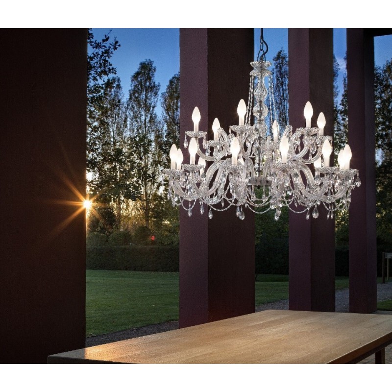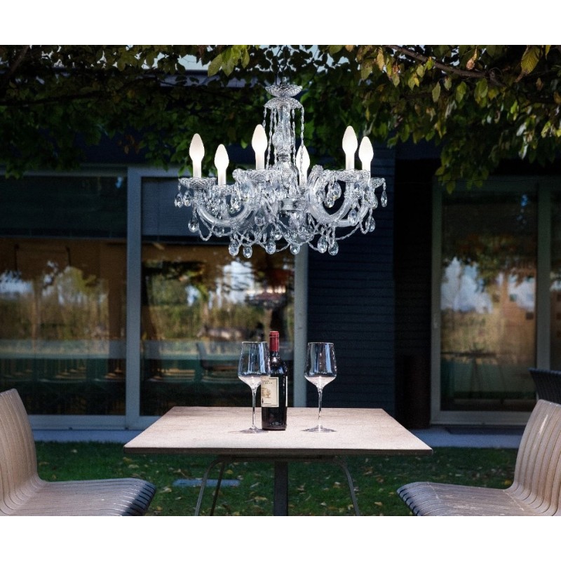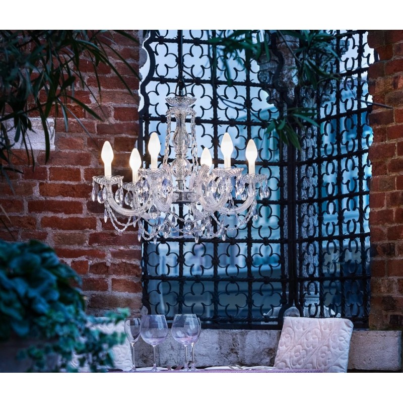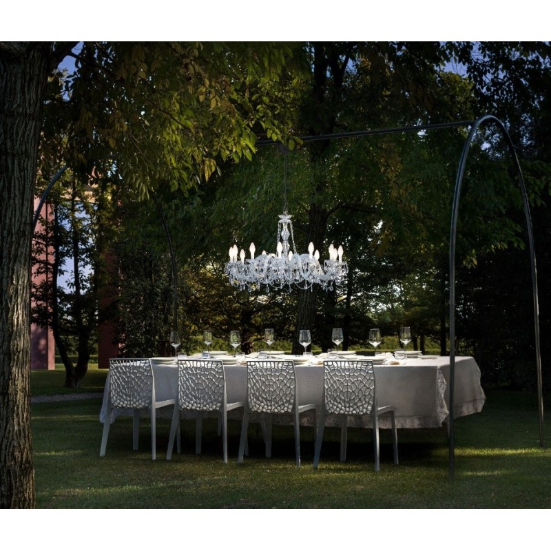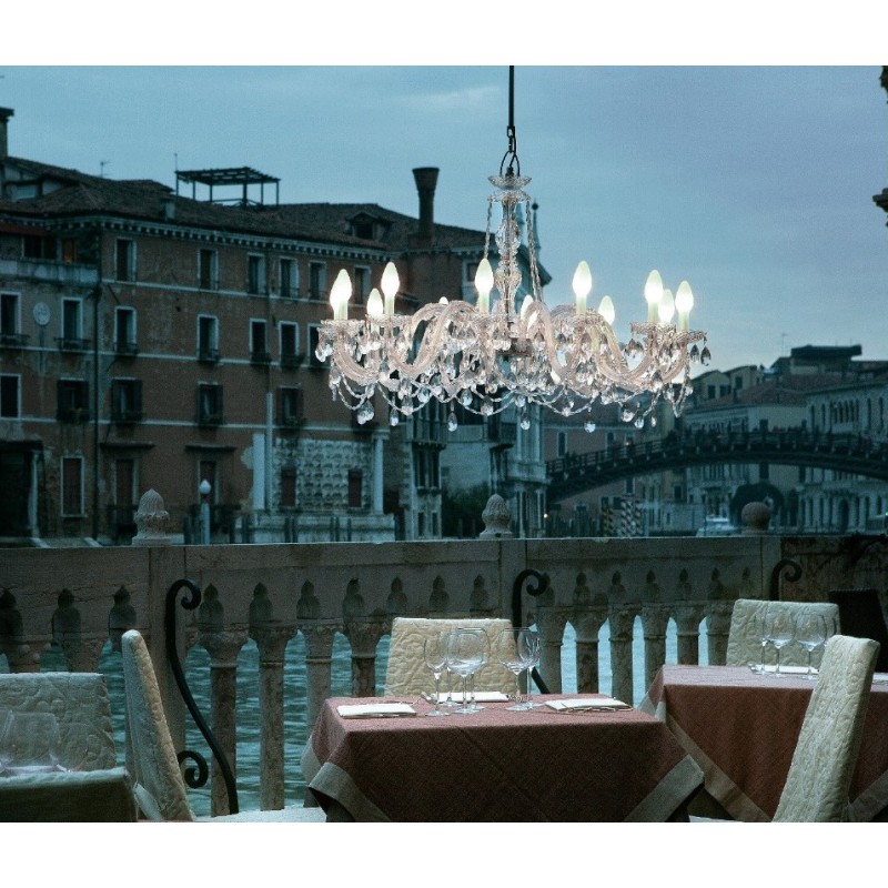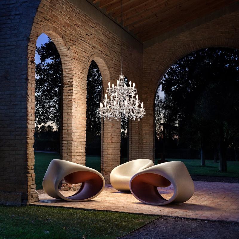 A luxurious chandelier that provides a soft and warm light through its layers, giving a romantic ambiance to any setting. Having created custom chandeliers for over three decades, we specialize in bringing lighting concepts into reality, whether your inspiration comes from a rough sketch, an existing chandelier, our original concepts, or even your own creative imagination. Large or small, our team can meet the challenge. It is now possible to fit any outdoor environment with Venetian style chandeliers, with the same safety as a regular outdoor light. We hope to bring this joy to you and your environment, as we ultimately believe that good design should make the world around us a more beautiful and harmonious place to live.