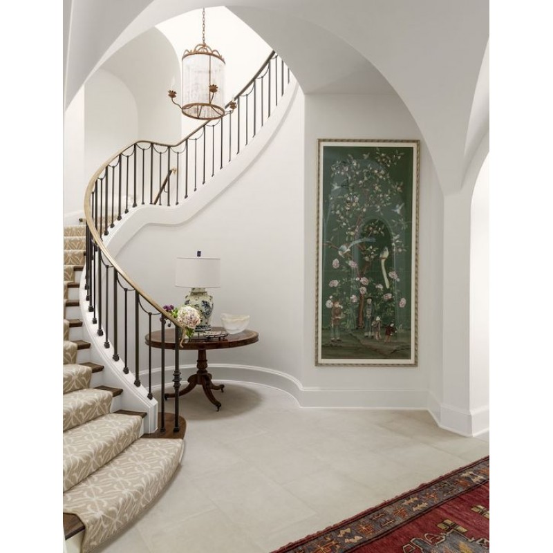 The Palissy Lantern was inspired when we spotted a wonderful antique lantern during an antiquing trip to France. We offer this lantern in a traditional French shape which includes eight lights, four projecting out from the frame and another four shimmering inside. The glass curtain is composed of vertical rows of thin glass tubing, lightly silver-leafed inside the fixture, to lend shimmer to the overall effect.
