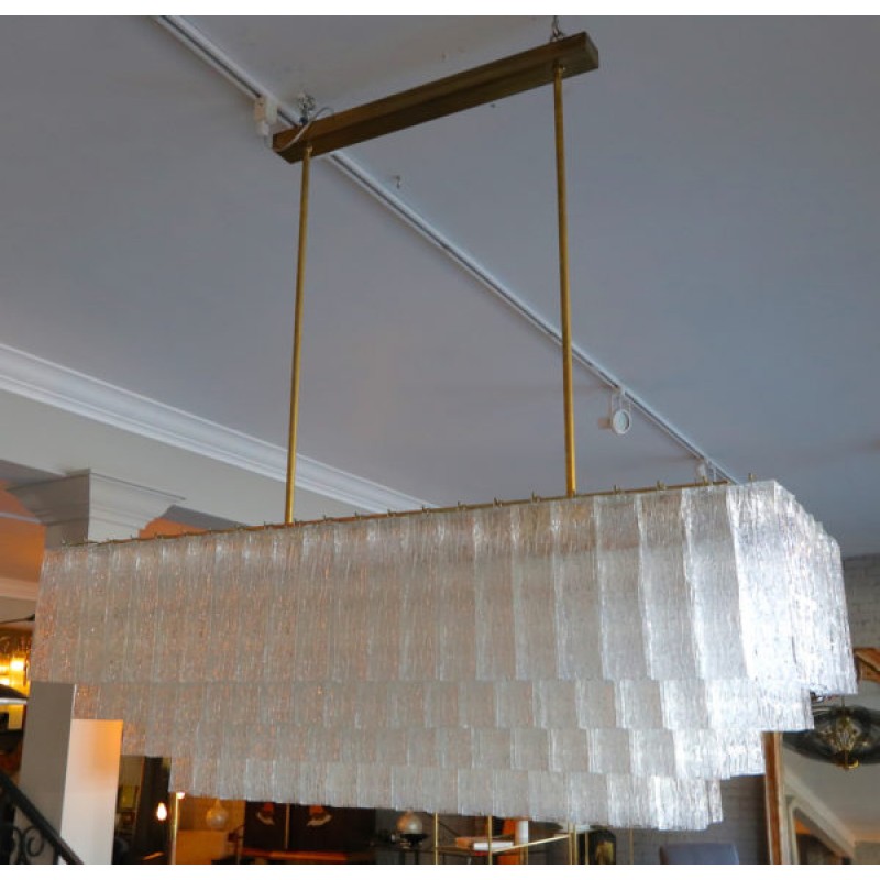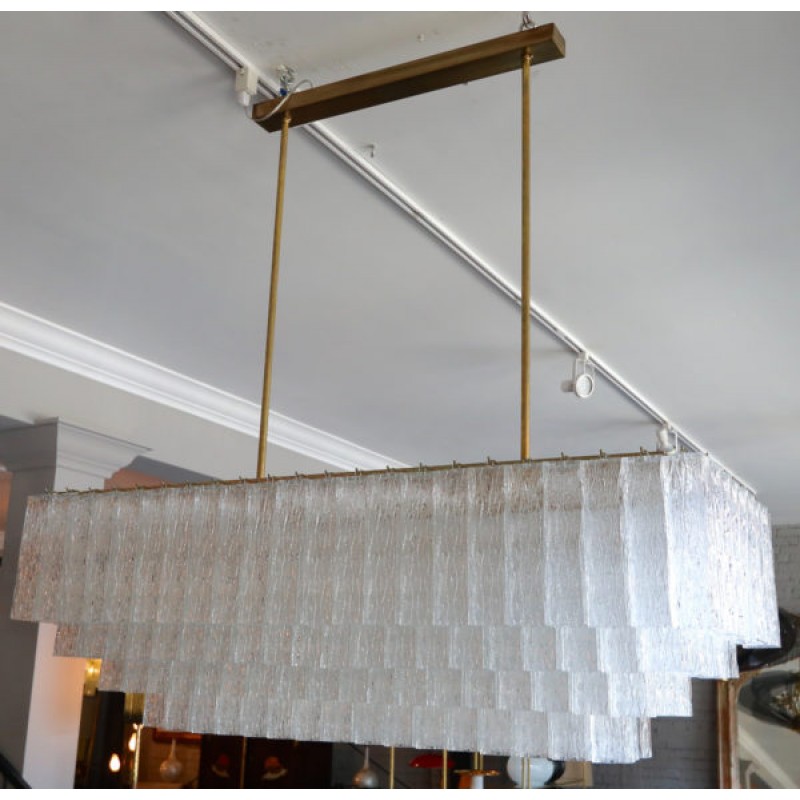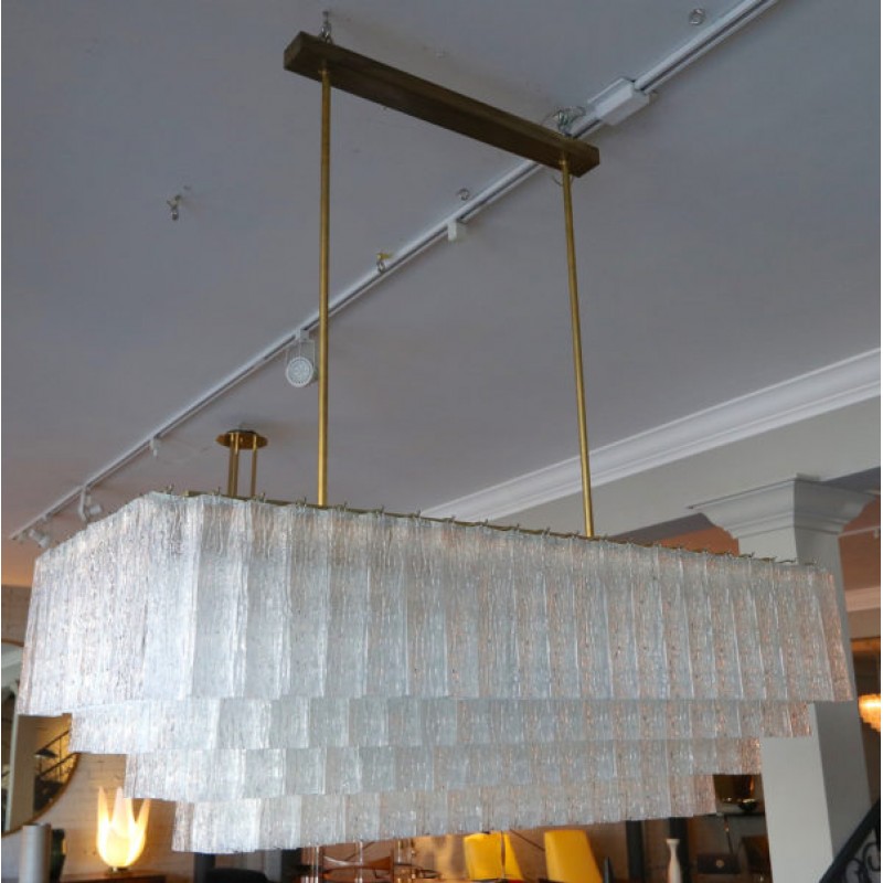 Rectangular chandelier by Vistosi from the 1960s with brass canopy and 20 lights and 204 Murano glass pieces. At Alan Mizrahi Lighting Design, we manufacturer many highly sought after pieces. All Chandeliers can be customized by a number of lights, style, color and size to meet your specific needs. Every chandelier can also be combined with a matching table lamp and wall lamp to accomplish the best room design. Our company provides collections that can make all your project dreams come true. Lighting products play an important role in any room setting. Hence, you need to make sure that the items you choose should brighten the room while rendering it a relaxing and welcoming feel as well. The key to an elegant, opulent, bespoke design is understanding the aspirations of the client, the relevance of location and through maximizing the potential of existing elements of the space.