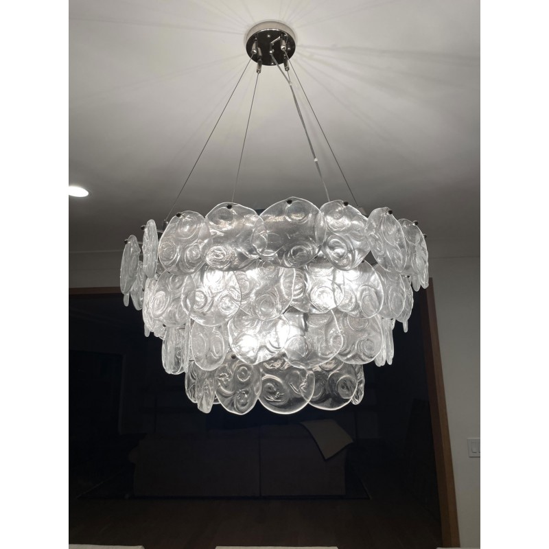 The Prelude Chandelier has 12 lamps and comes with clear free formed glass disk. At Alan Mizrahi Lighting Design, we supply and manufacturer many highly sought after designer pieces, All Chandelier can be customized by a number of lights, style, color and size to meet your specific needs. Every chandelier can also be combined with a matching table lamp and wall lamp to accomplish the best room design. Our company provides collections that can make all your project dreams come true. Lighting products play an important role in any room setting. Hence, you need to make sure that the items you choose should brighten the room while rendering it a relaxing and welcoming feel as well.