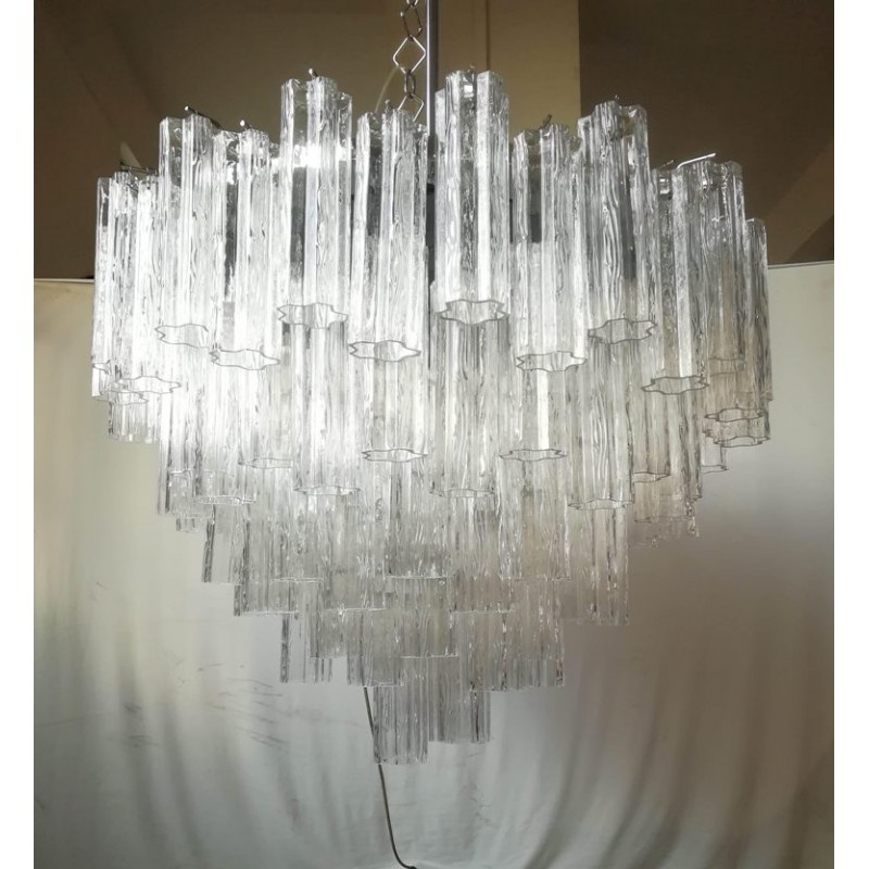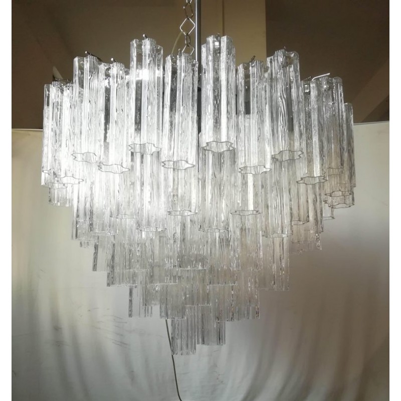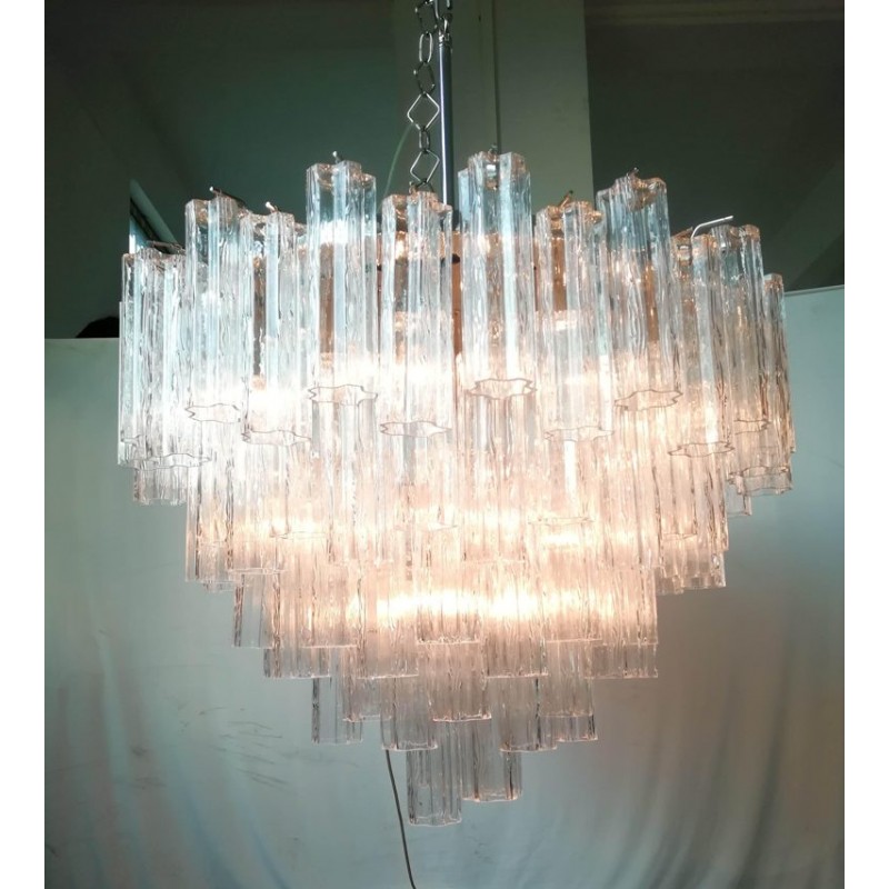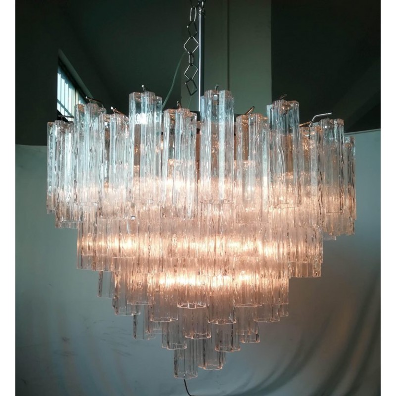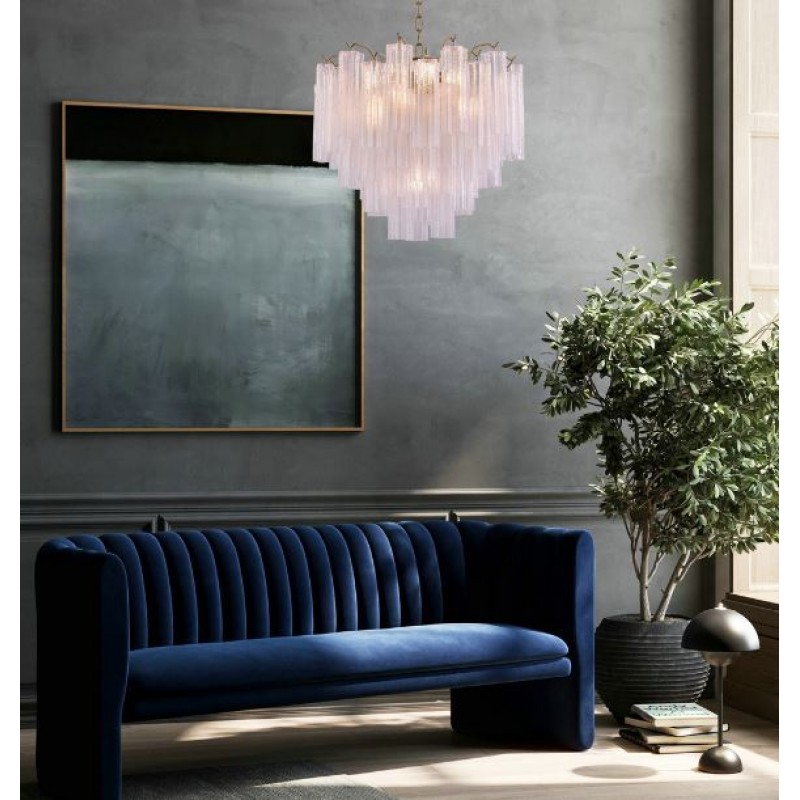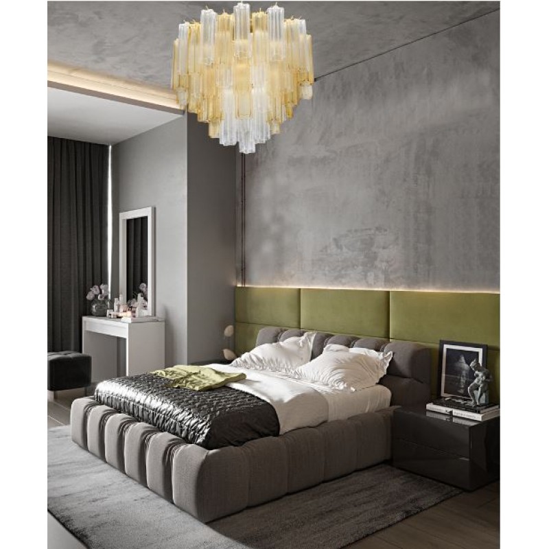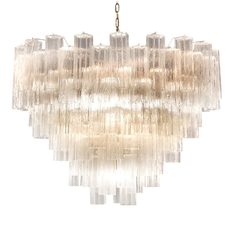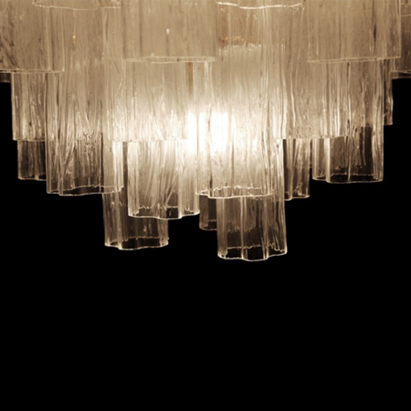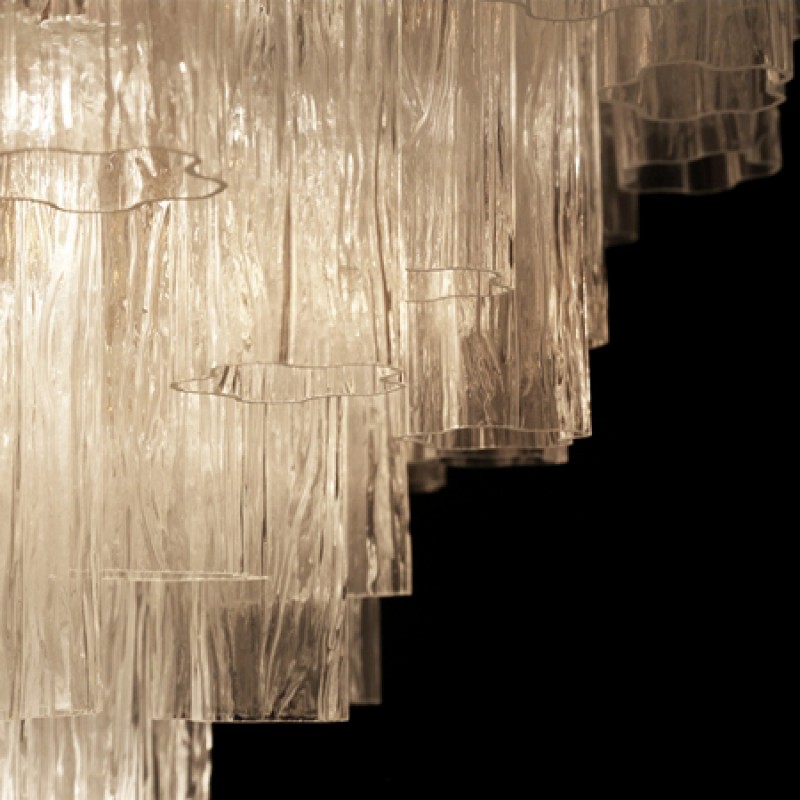 Celestial is a superbly distinctive piece comprising elegant contours of fluted glass. Layers of beautifully moulded prisms of smoked glass adorn the chandelier; creating a design visual that can both elevate and define your interiors. Available in custom sizes and finishes.