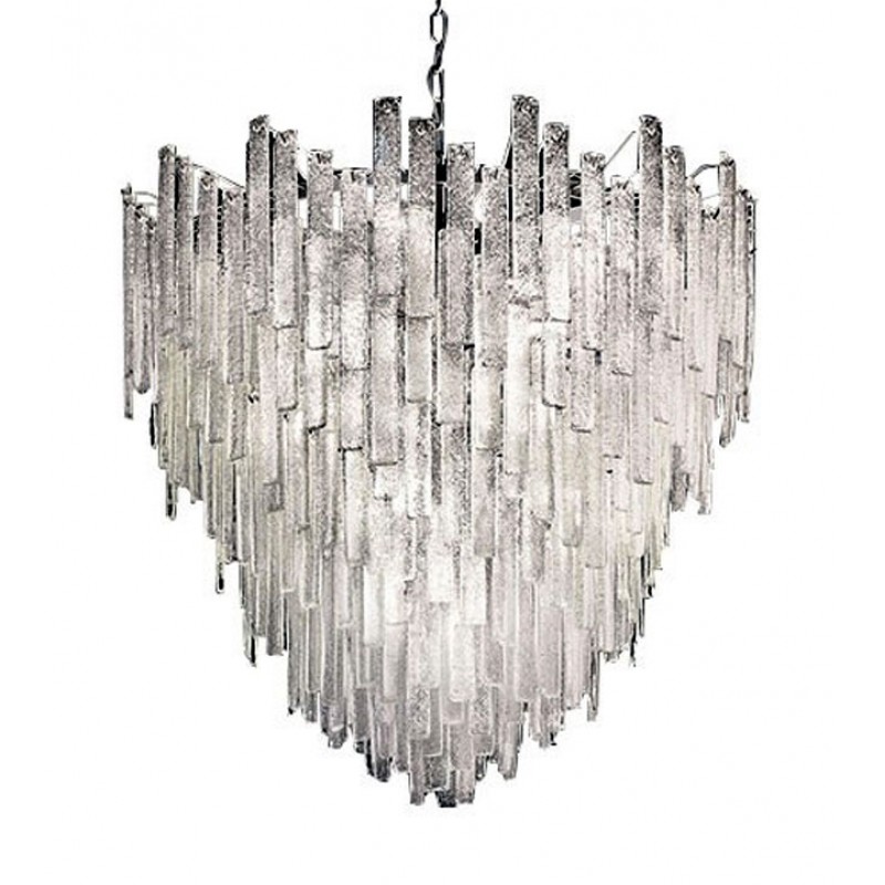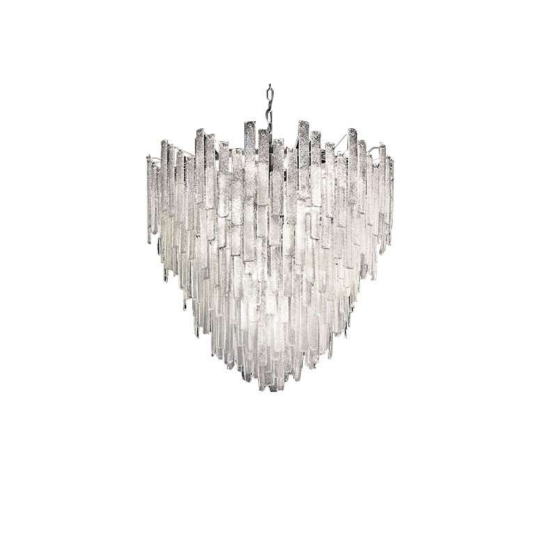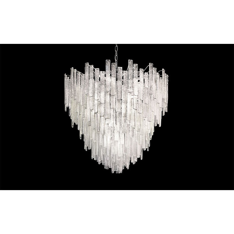 Famiglia is a glamorous Venetian style into your home, this stunning vintage replica chandelier with gold finish exudes the vibrant atmosphere of the roaring 1920s. Several tapered levels of frosted glass elements emanate a captivating illumination. Its glass pieces, are what adds a unique look to a fixture of such character, and will bring a stylish look and classy elegance that every space needs