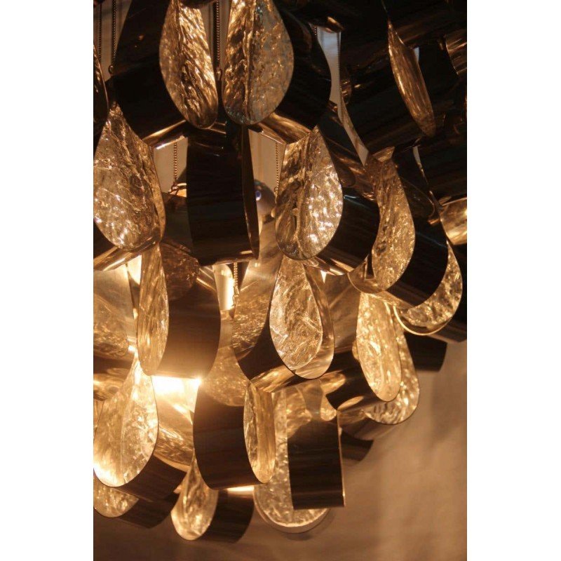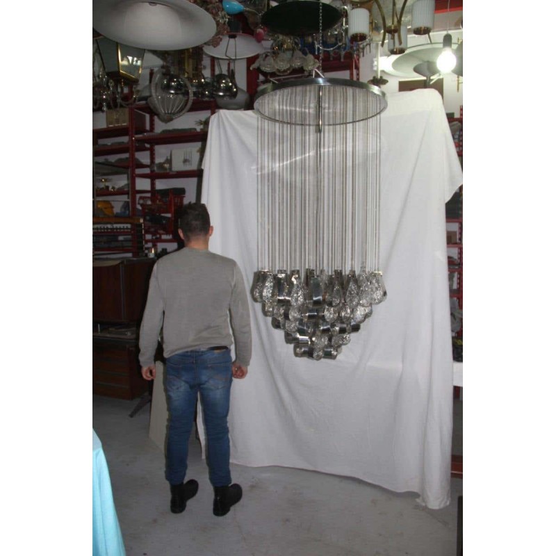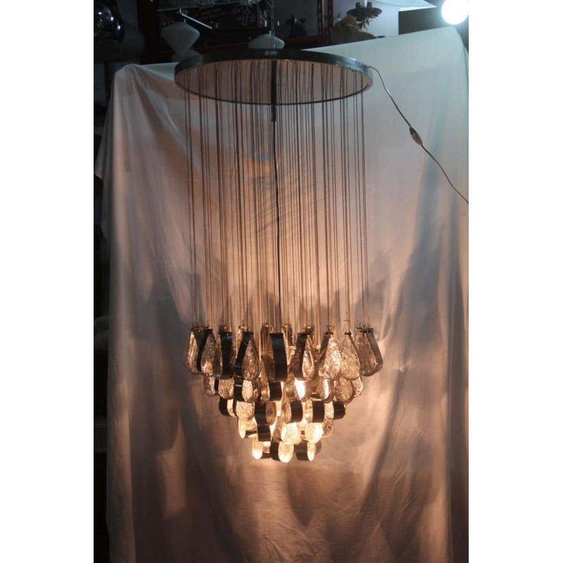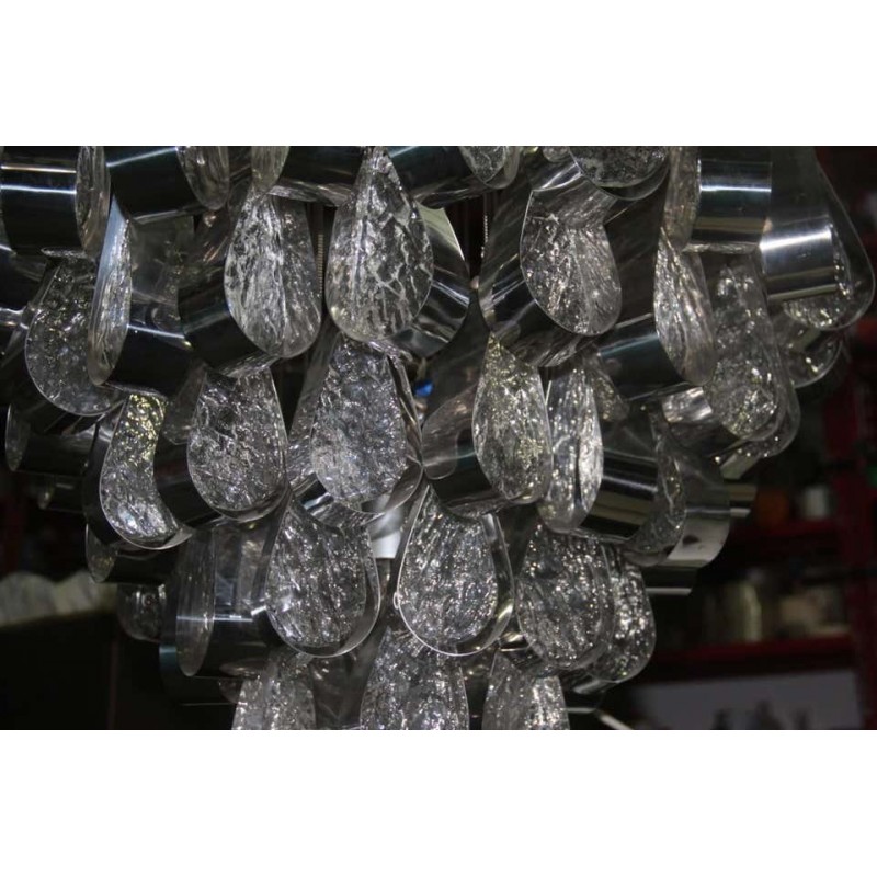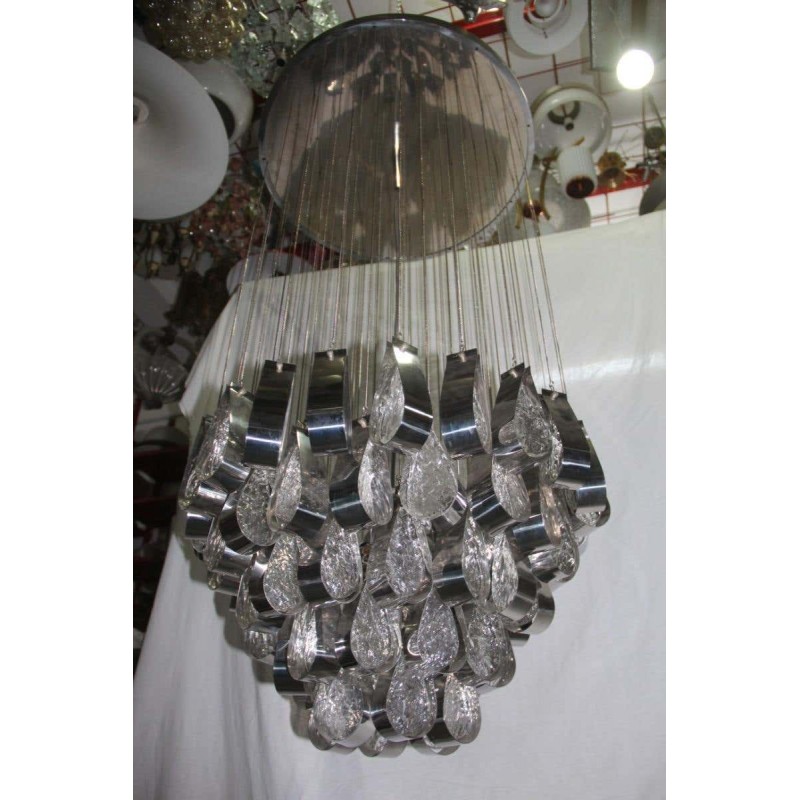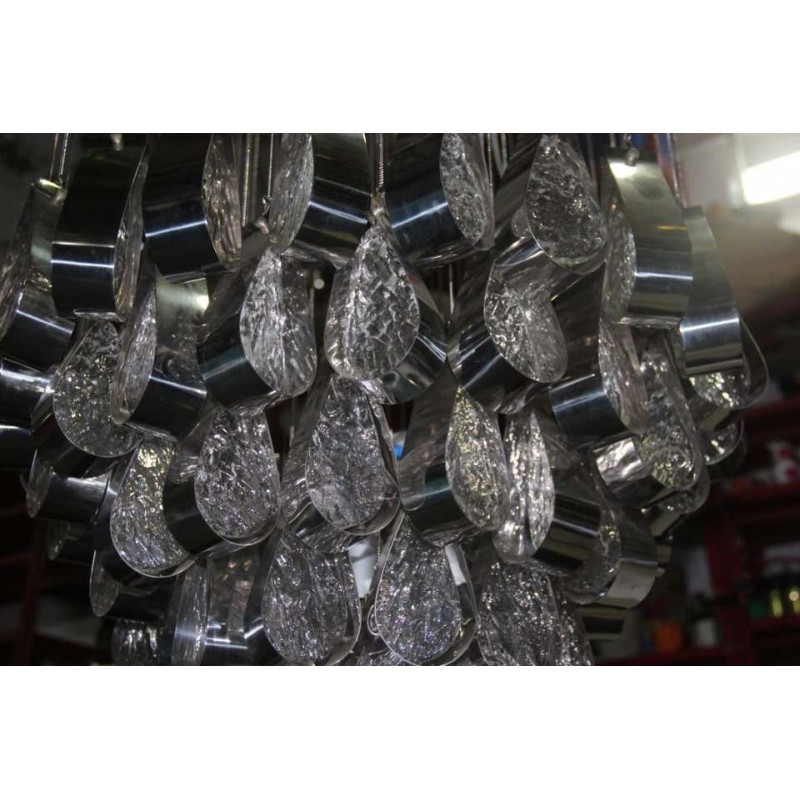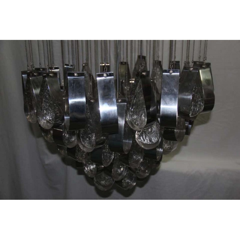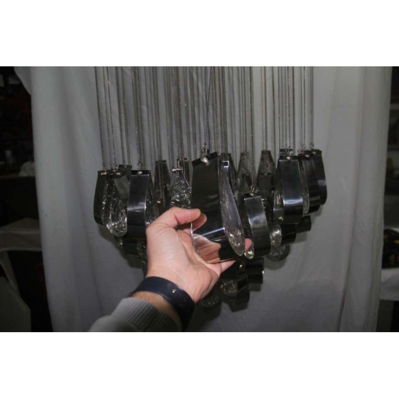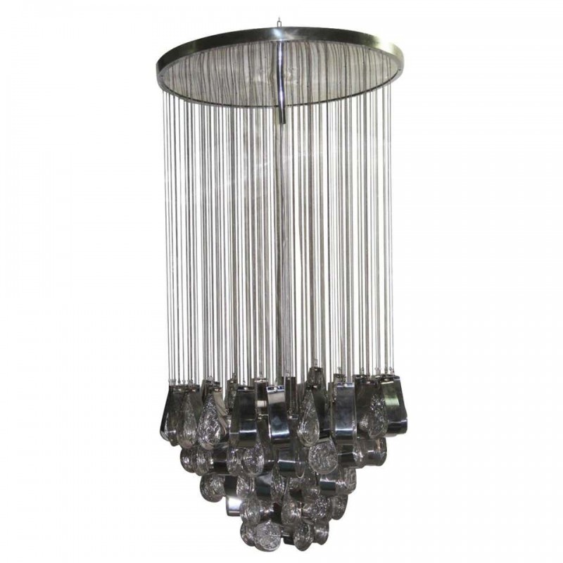 Round chandelier Waterfall drops steel, glass chains Murano glass 1970s Italian design. The key to an elegant, opulent, bespoke design is understanding the aspirations of the client, the relevance of location and through maximizing the potential of existing elements of the space.