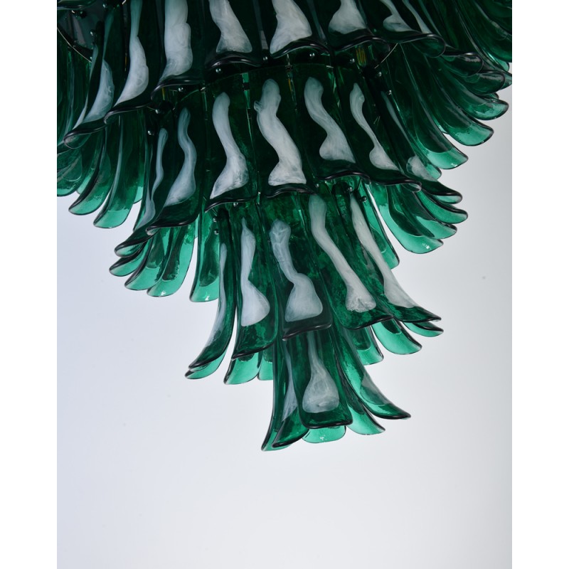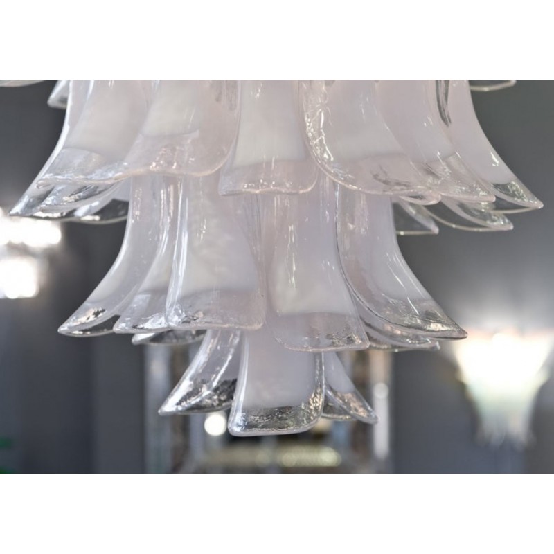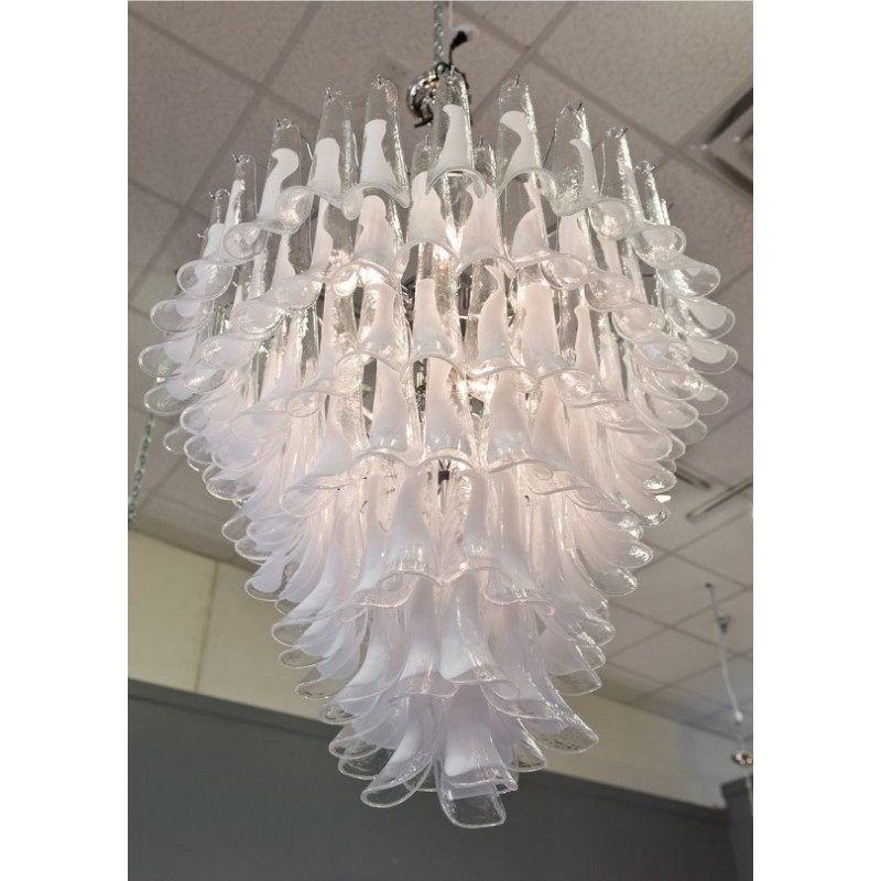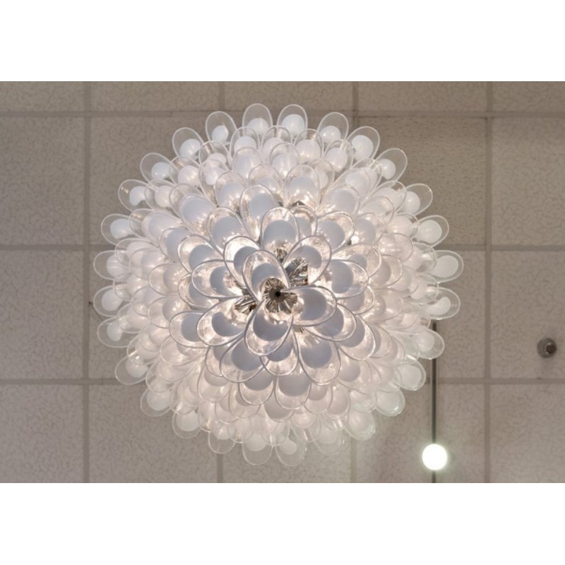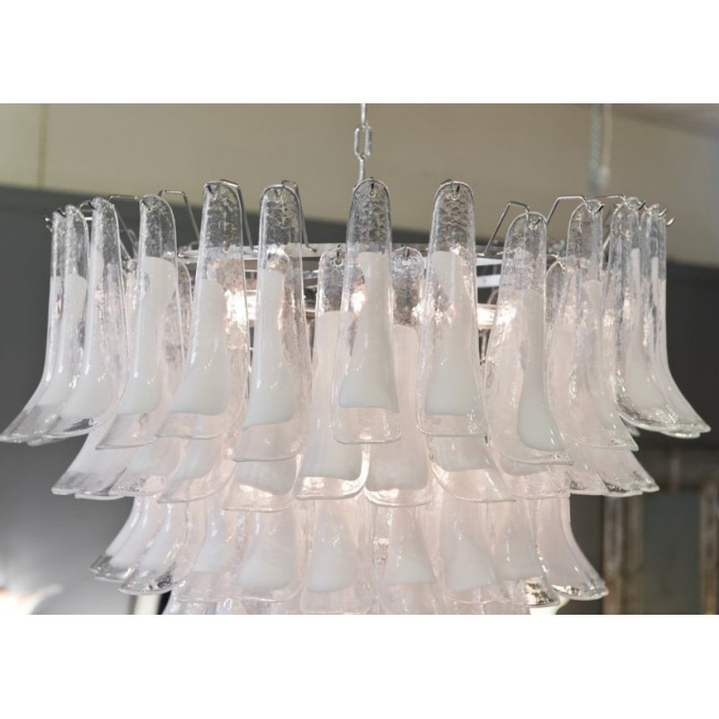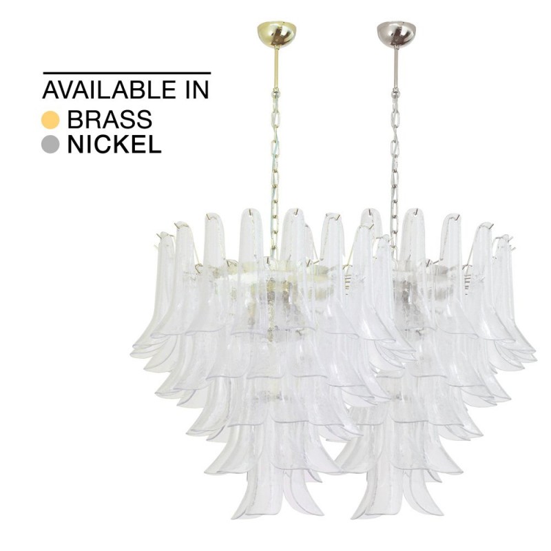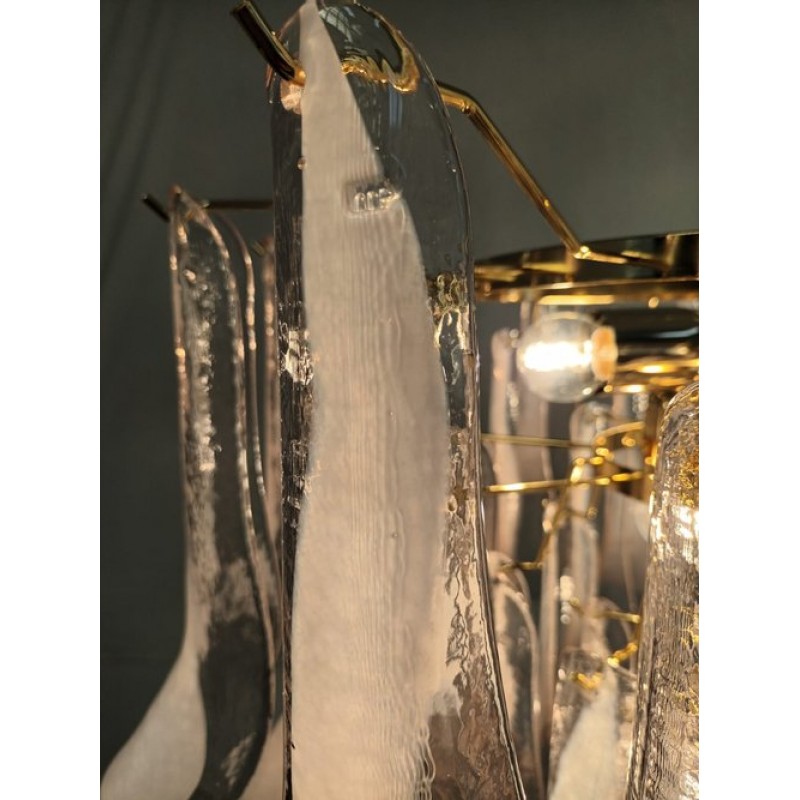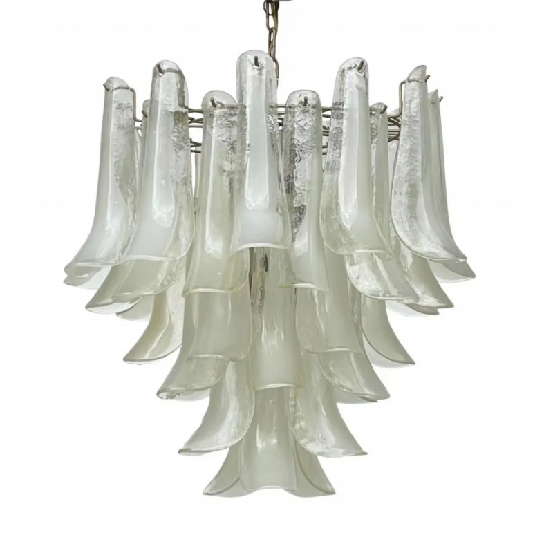 A maximalist chandelier with ombre-painted glass and a delicate, blooming design. Marielle's mid-century petal chandelier marries the best of grand nouveau lighting and maximalism in interior design. The gold chrome on this unique chandelier frame completes this truly stand-out piece. This waterfall chandelier made with faux Murano glass takes your home to the next level. A decorative light fixture with an elegant floral shape accentuates your transitional interior design into a beautiful modern house. This unique chandelier is a masterpiece as a dining room light fixture, lounge or living room ceiling light.