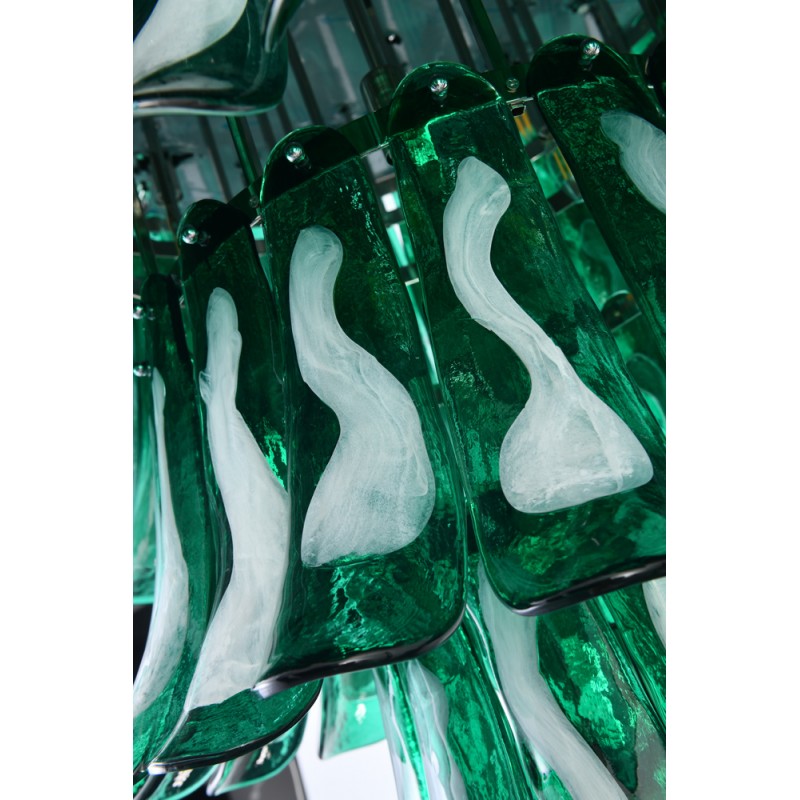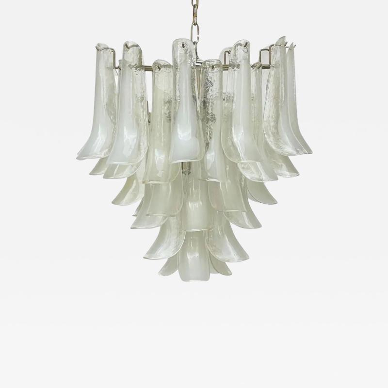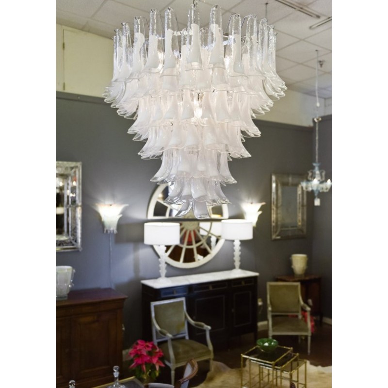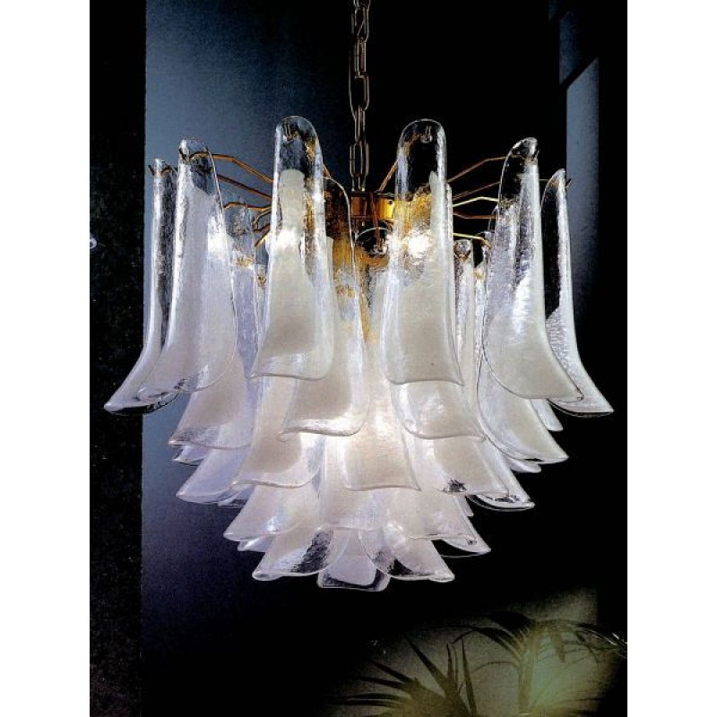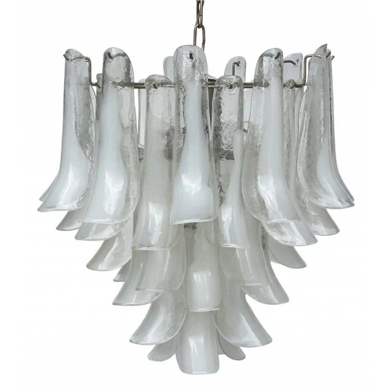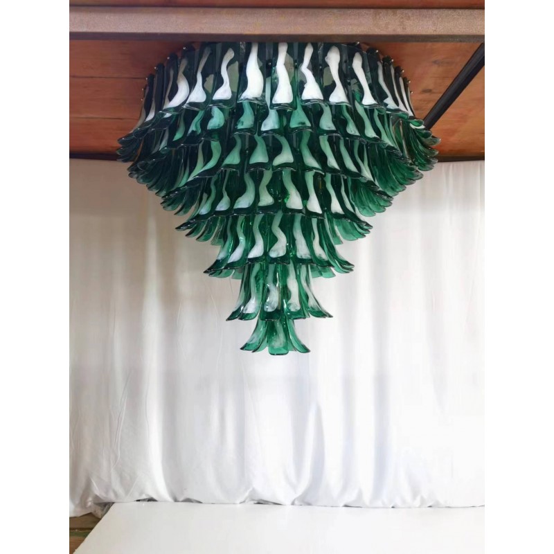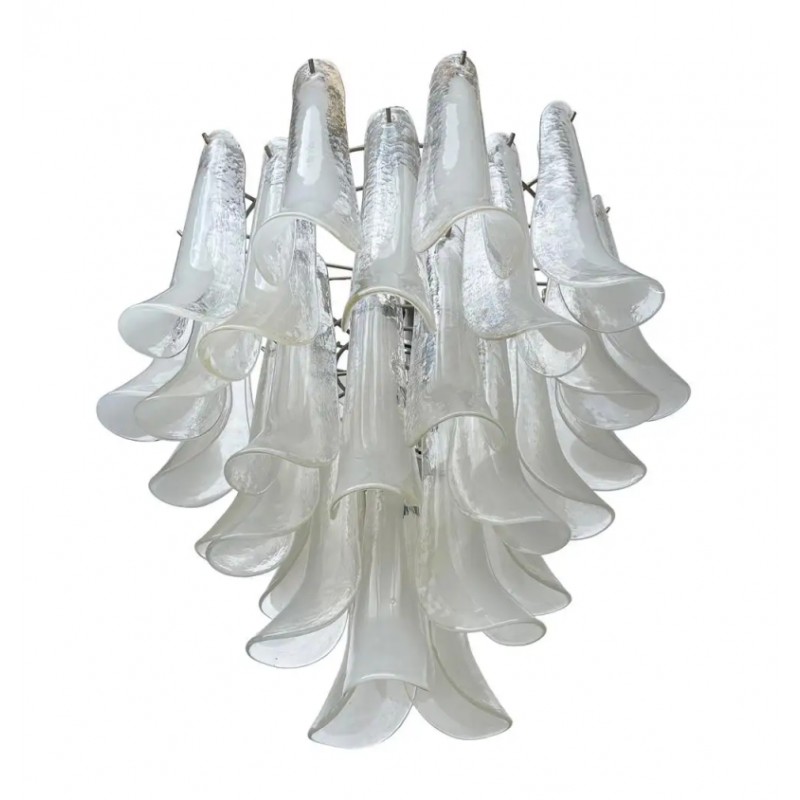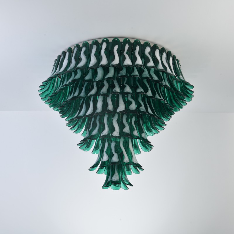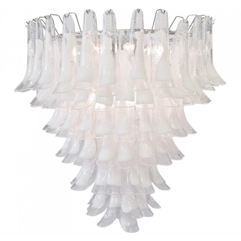 A maximalist chandelier with ombre-painted glass and a delicate, blooming design. Marielle's mid-century petal chandelier marries the best of grand nouveau lighting and maximalism in interior design. The gold chrome on this unique chandelier frame completes this truly stand-out piece. This waterfall chandelier made with faux Murano glass takes your home to the next level. A decorative light fixture with an elegant floral shape accentuates your transitional interior design into a beautiful modern house. This unique chandelier is a masterpiece as a dining room light fixture, lounge or living room ceiling light.
