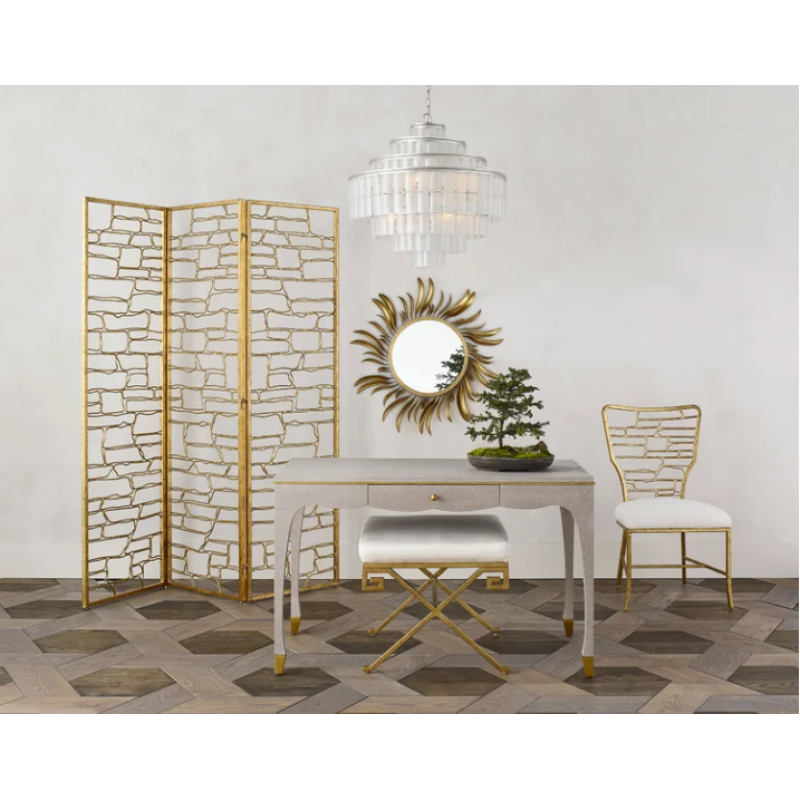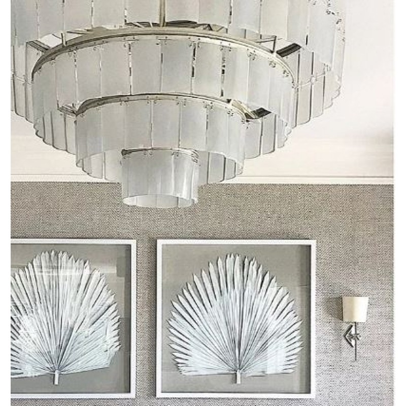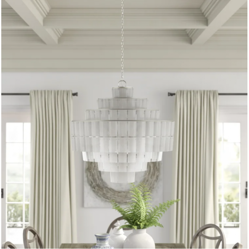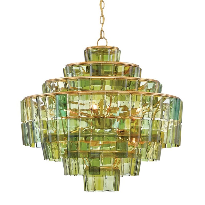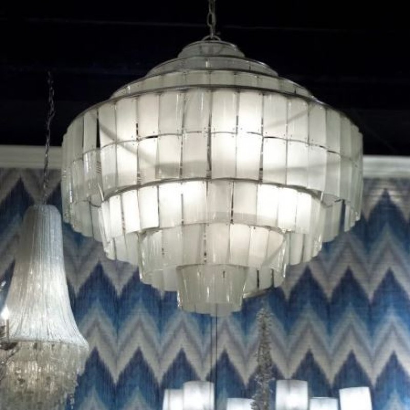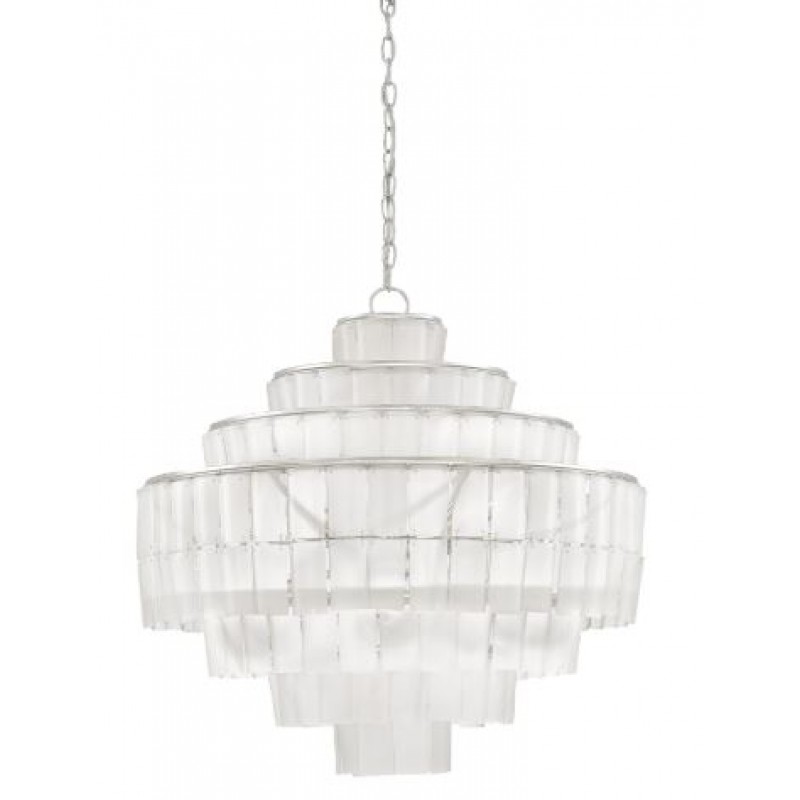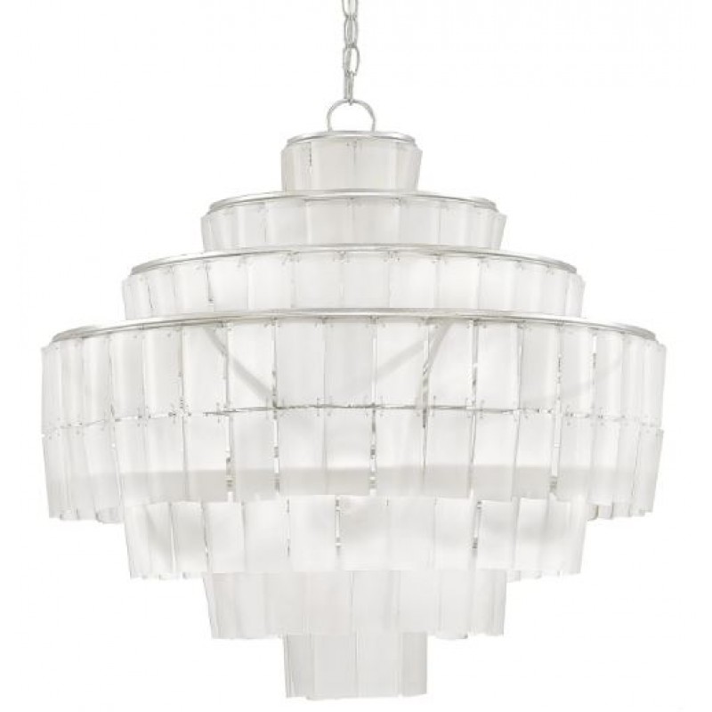 Each layer of the Sommelier Blanc Chandelier is made of individually-cut pieces of frosted glass sourced from recycled bottles. Each piece is textured and unique in its own way and is enhanced by the frame's bright Silver Leaf finish. Our original designs incorporate an understanding of historic design with an abundance of imagination.  Inspirations for these designs often come from the past as familiar shapes and materials are translated into items appropriate for today's consumers. Wrought iron, brass, silver, wood and porcelain as well as a variety of ethnic materials are used to create these designs.