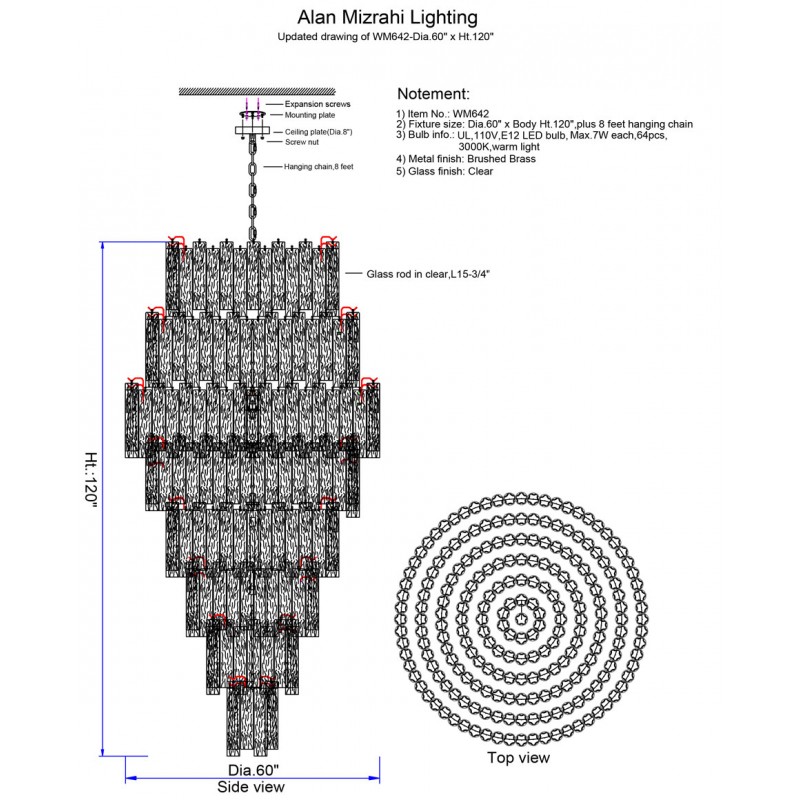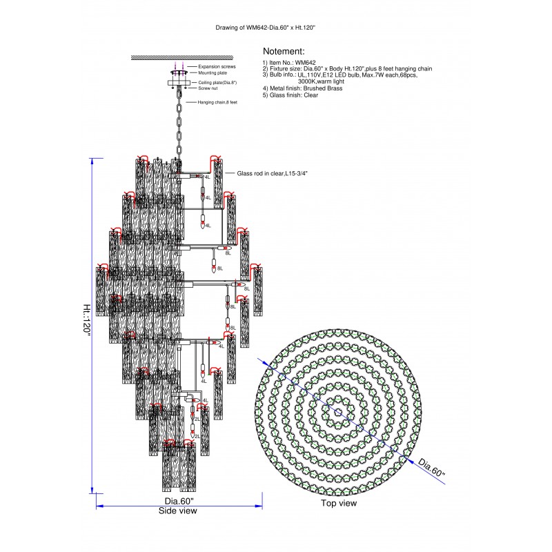 60” Wide x 120” Height - 7 ties with top Tiers