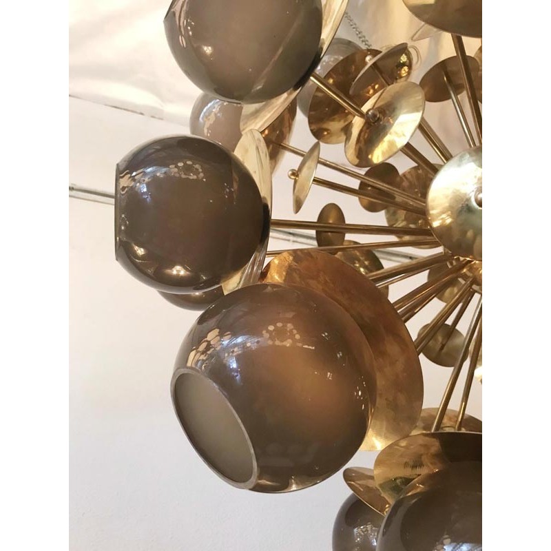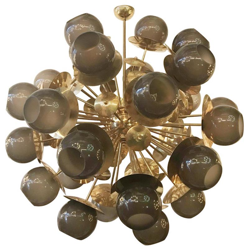 Showcasing a striking silhouette sparked by the space race, this sputnik chandelier brings a splash of modern style as it illuminates any arrangement. Layered spherical shades with smoky glass interiors and clear exteriors complete the look with even more contemporary appeal. This piece is best suited to larger dining and living rooms. Not only does proper illumination add basic functionality, but it can also contribute to an overall design style and act as a tool to highlight different features or create the perfect ambiance. Having created custom chandeliers for over three decades, we specialize in bringing lighting concepts into reality, whether your inspiration comes from a rough sketch, an existing chandelier, our original concepts, or even your own creative imagination. Large or small, our team can meet the challenge. Every chandelier can also be combined with a matching table lamp and wall lamp to accomplish the best room design. All chandeliers can be customized by the number of lights, styles, colors, and sizes to meet your specific needs. Surprise your guests, employees, or whoever else that may encounter this contemporary and eye-catching fixture that would be a highly impressive focal point in any room you place it.