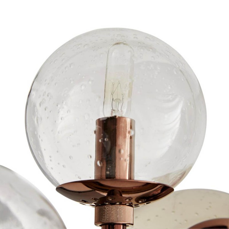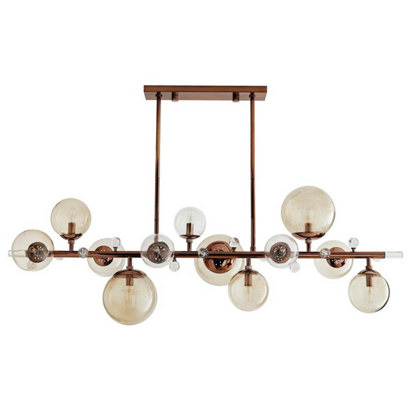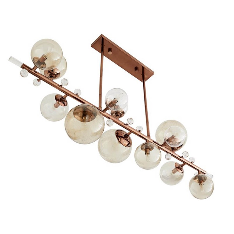 Bubbles on the tree trunk are inspired by the bubbles formed on tree branches by rain. It is composed of sleek and slender nickel frame with antique brown finish and varying sizes of hand blown smoky glass fixtures. Small, clear crystal knobs contrast beautifully with the smoke finished glass creates a sparkle effect that interacts with the light. Attract attention, provoke emotion to the imagination with games of light and matter. Such as the ambition and the creative spark of the “Bubbles on Tree Trunk Chandelier” style. A luxurious chandelier that provides a soft and warm light through its layers, giving a romantic ambiance to any setting. These unique shapes and colors can be only created using traditional hand-blown glass techniques.