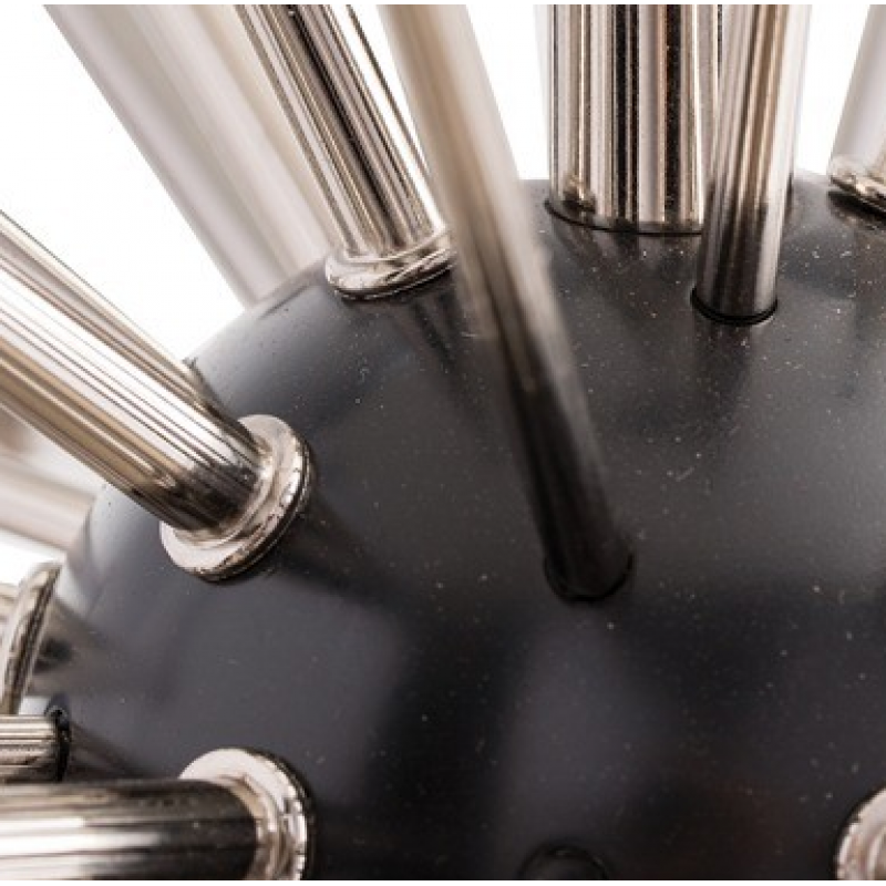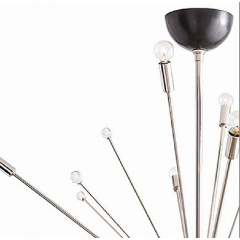 Inspired by a trip to Paris, this 24 light modern starburst design in polished nickel is the perfect choice if you want drama, lots of light and a mid-century look. Shown with small clear globe bulbs. Fall in love with this modern style in your personal space! At Alan Mizrahi Lighting Design, we manufacturer many highly sought after pieces. All Chandeliers can be customized by the number of lights, style, color, and size to meet your specific needs. Every chandelier can also be combined with a matching table lamp and wall lamp to accomplish the best room design. Our company provides collections that can make all your project dreams come true.