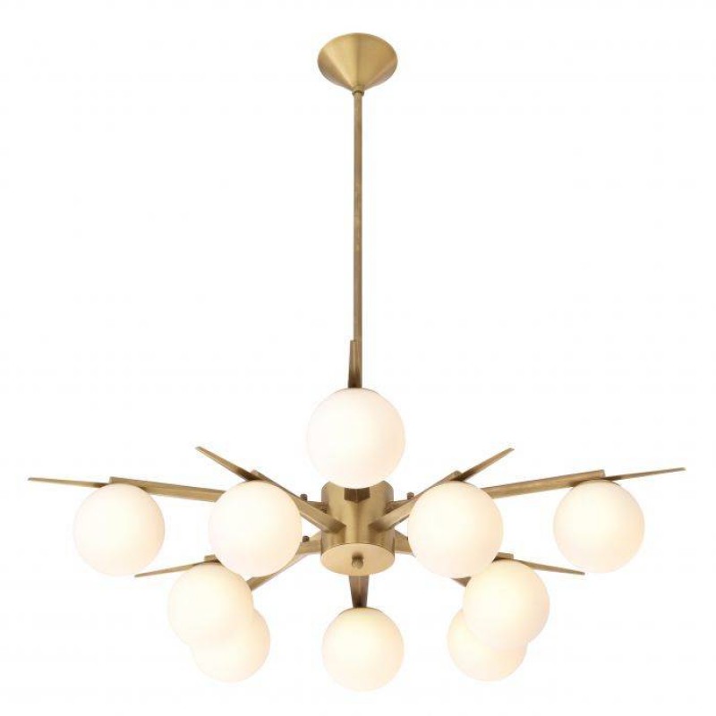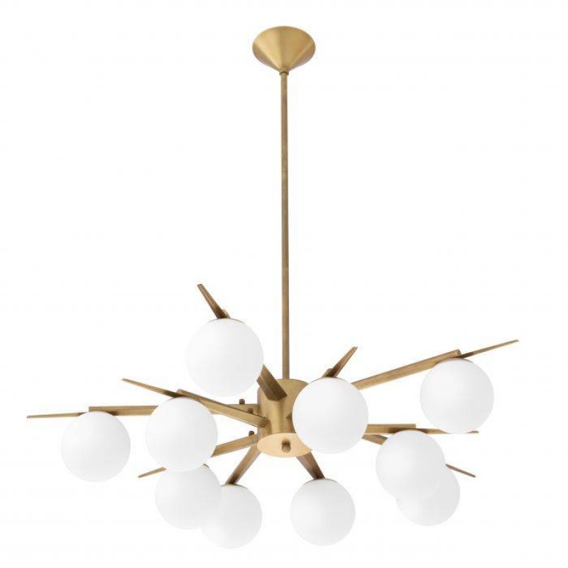 With its sunburst fixture, the stunning Venezia Chandelier adds to the pleasant ambience of a Mid-Century Modern styled space. Spherical white glass shades spread a soft and warm light throughout the room, while the antique brass finish completes the look with crisp contrast. To maintain the beauty of your luxury lighting, we recommend the following simple guidelines. When cleaning a lamp, make sure you unplug the power cord first. Always make sure sprays or liquids can not get in the lamp fittings.