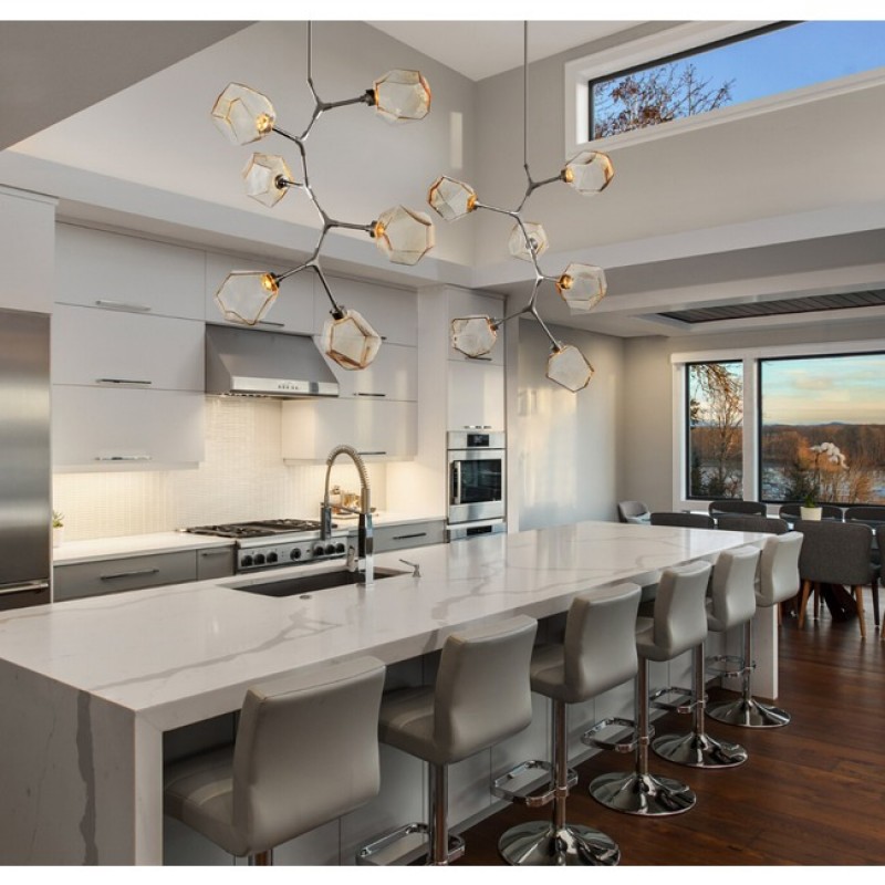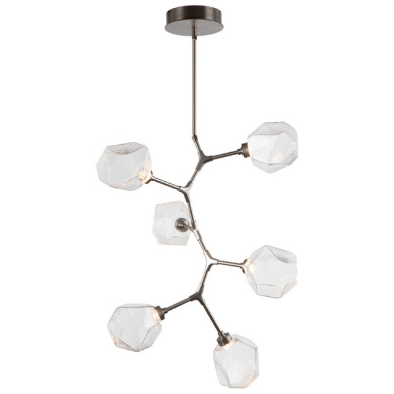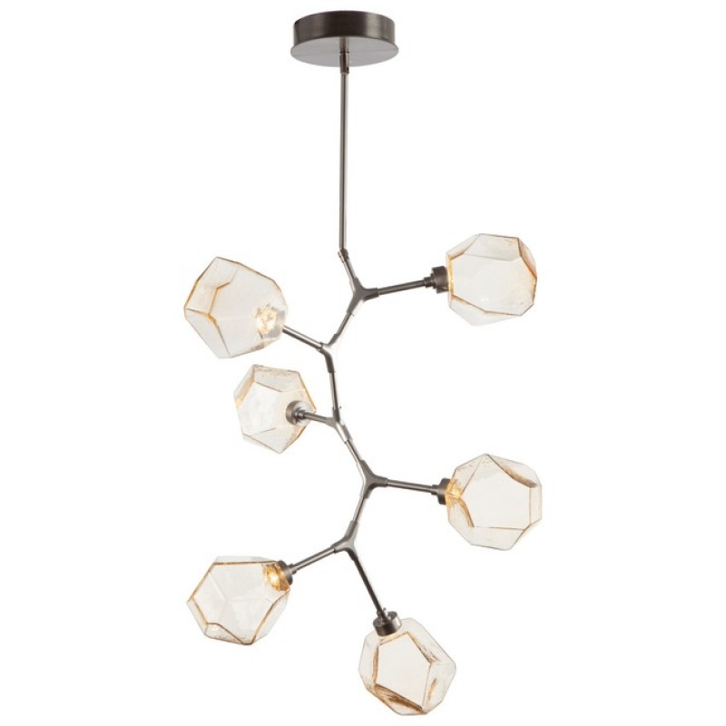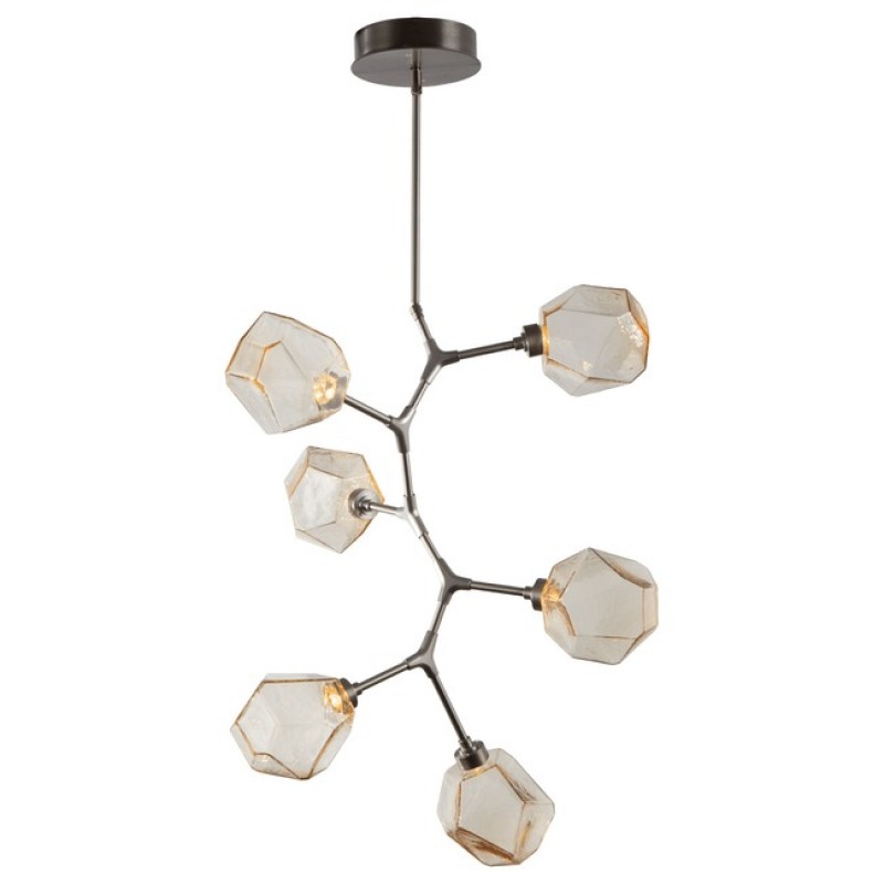 The Gem Vine Branch Chandelier is jewelry for your home. Feature gems of LED lit hand blown glass that is meticulously crafted by artisan, the fixture gives a nod to an organic aesthetic that exudes casual sophistication. Each shade takes the place of a traditional bulb and unfolds with striking illumination. The finished look is relaxed, soft and unique. Each glass shade is a one-of-a-kind artisan creation. Available with Clear, Bronze, Amber or Smoke hand blown glass shade and Heritage Brass, Gunmetal, Gilded Brass, Flat Bronze, Satin Nickel, Oil Rubbed Bronze, Metallic Beige Silver or Matte Black finish in 6 or 8 light options. Dimmable with LED compatible dimmers.