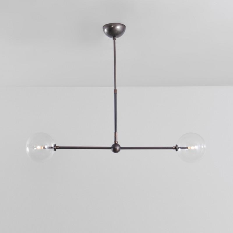 The Balance Pendant is a modern ceiling light made of solid brass with mouth blown glass globes. This is the perfect contemporary light fitting to make a statement in your home or commercial property. The workmanship and quality are of the highest standard. This comes in three different finishes and can be altered to your required height.