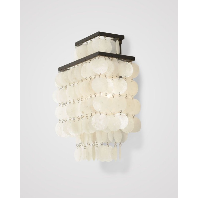 Those Sconces consist of small discs of mother-of-pearl on metal rings. The pendants are composed of a metallic structure in a Dark Antique Brass Finish. Maintaining several curtains of shells. At Alan Mizrahi Lighting Design, we supply and manufacture many highly sought after designer pieces. All chandeliers can be customized by a number of lights, style, color, and size to meet your specific needs. Every chandelier can also be combined with a matching table lamp and wall lamp to accomplish the best room design. Our company provides collections that can make all your project dreams come true….