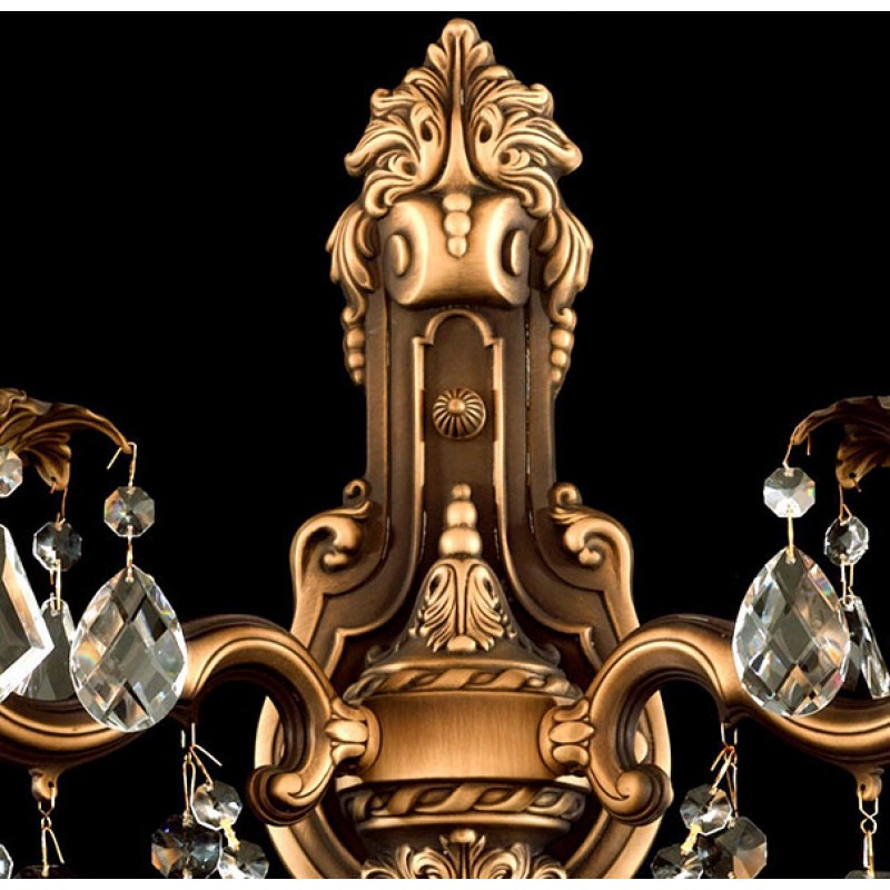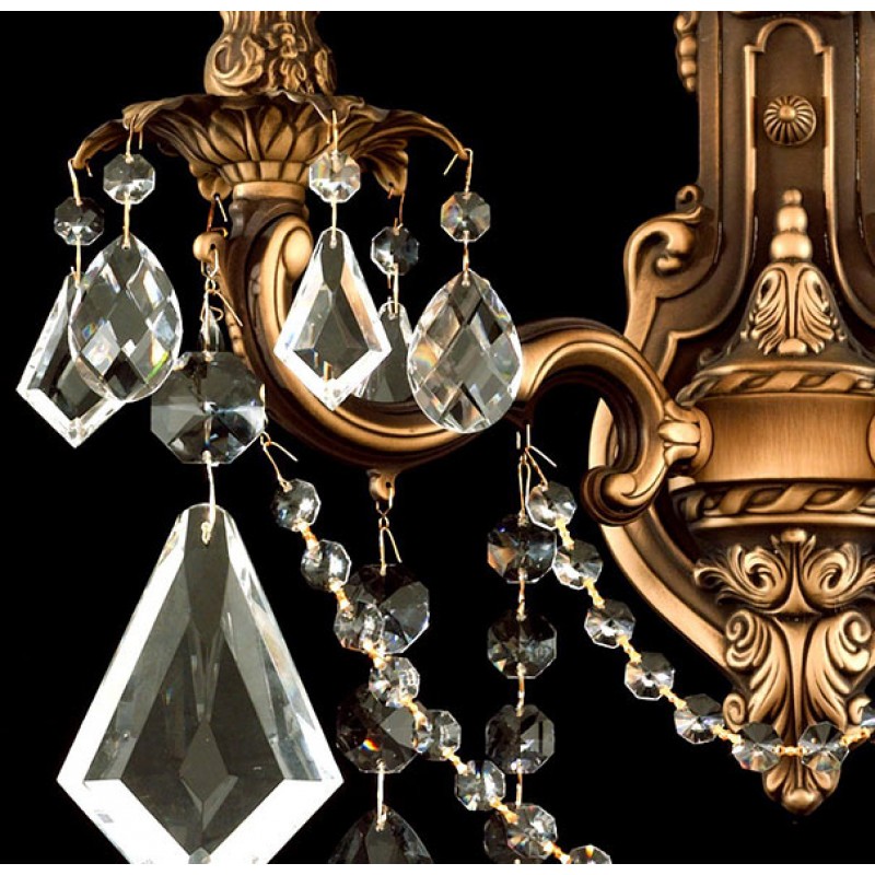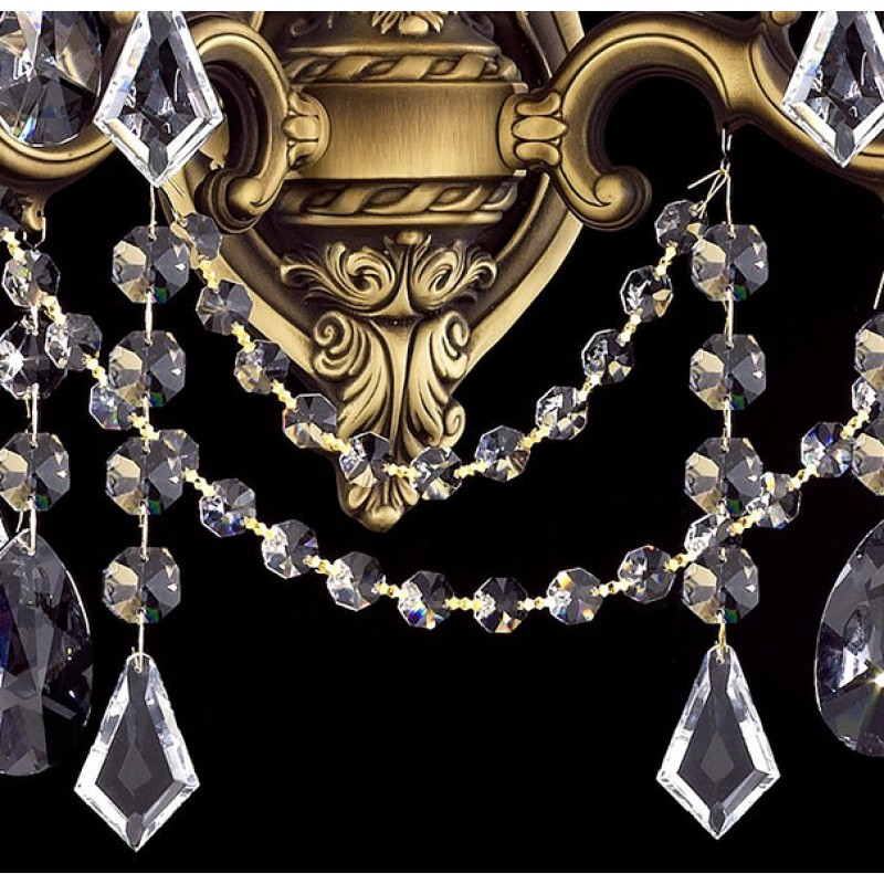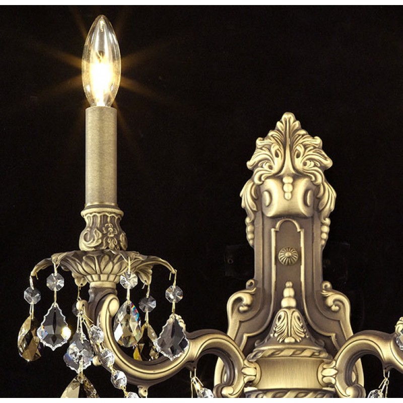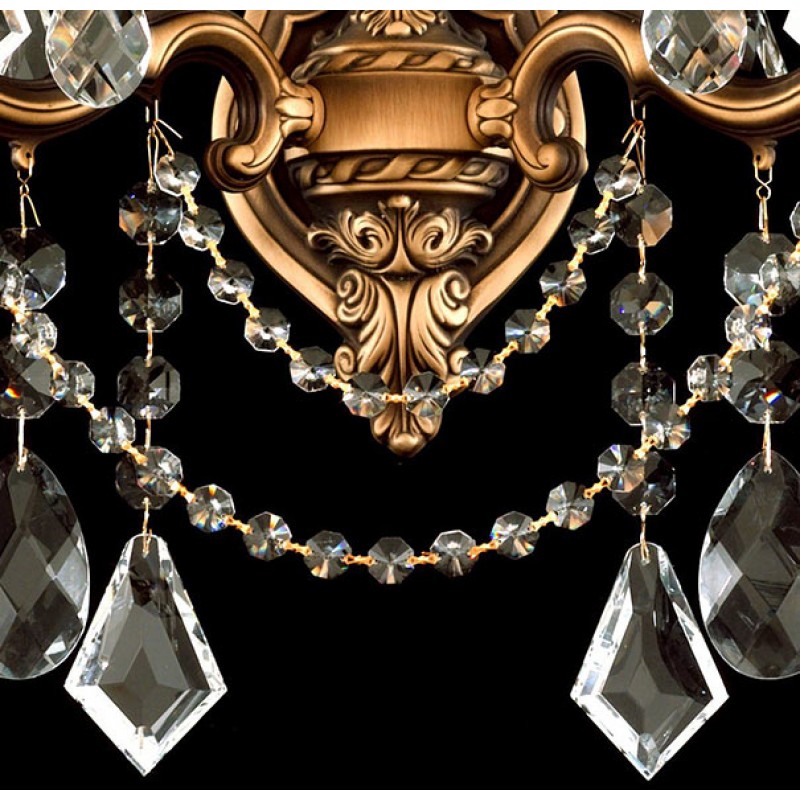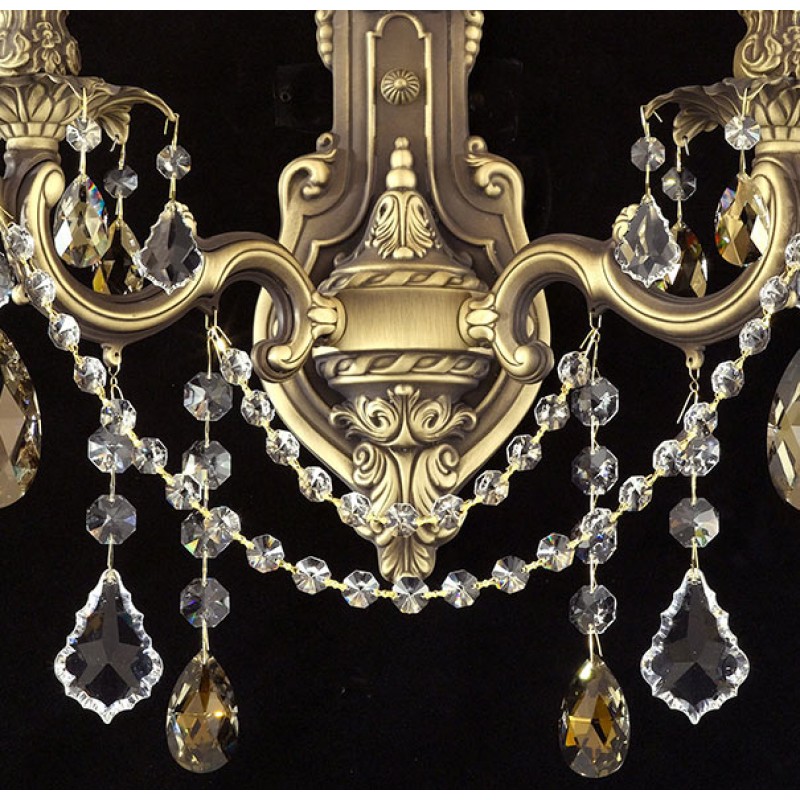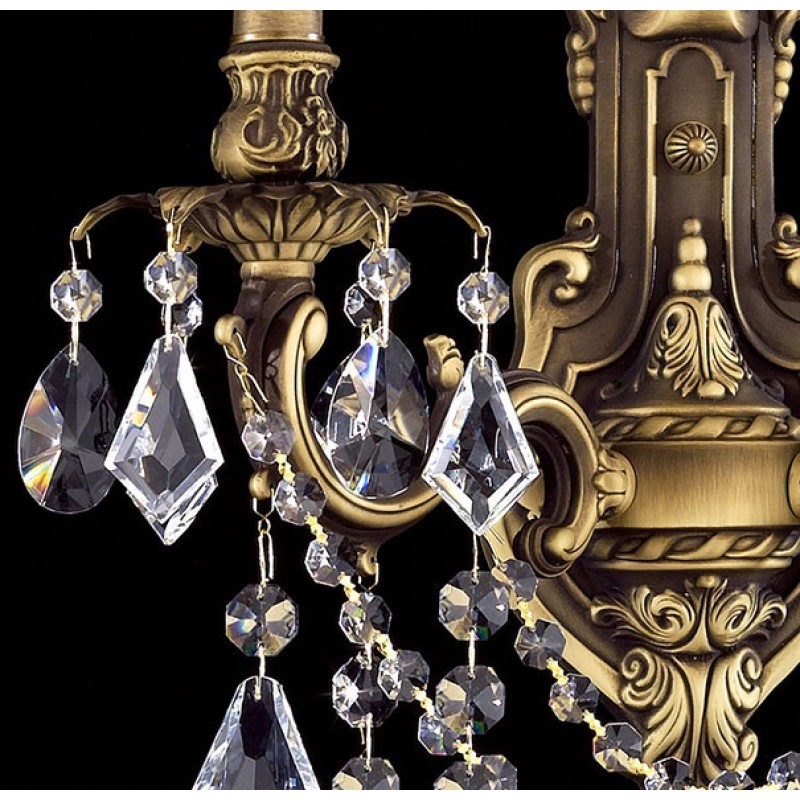 The roots of Spanish design can be traced back to the indigenous people of early Iberia. Theirs was and still is a rich culture influenced by the diverse populations that traversed the peninsula. Serving as the gateway to the Mediterranean, Spain’s design aesthetics reflect the warmth and passion of her people and continues to hold great influence over opulent and luxurious design today. This stunning chandelier collection clearly demonstrates its roots in the majesty of the Spanish court. Luxurious chains of crystal connect the solid Brass body of this striking design with its graceful arms. Massive pendalogues of crystal inhabit the ornately cast frame and add an impressive and dramatic embellishment that is usually reserved for the palaces of the monarchy.