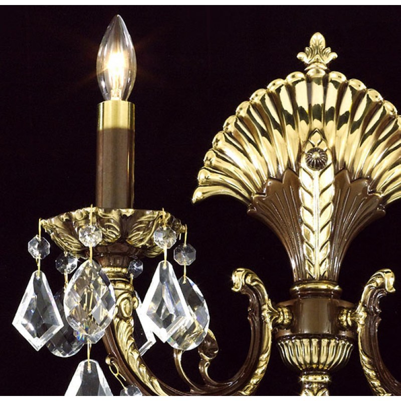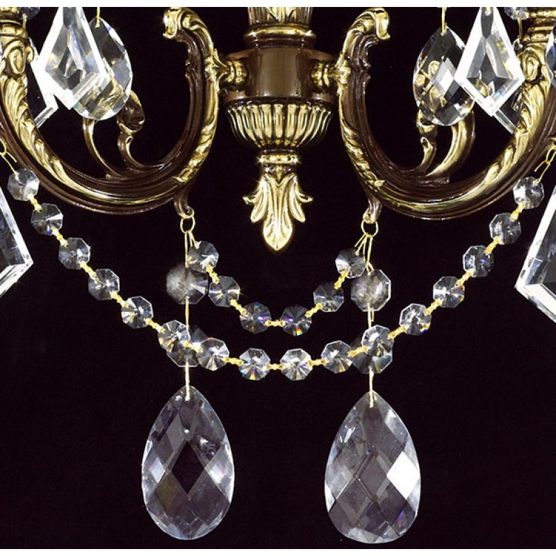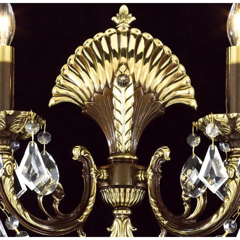 Valencia was an ancient kingdom that ruled the Mediterranean. Born of the union of the territories of Catalonia, Aragon, and Majorca, it held a commanding presence over some of the most beautiful regions of the world. That same commanding presence is apparent in the romantic and passionate design of our Valencia chandelier collection. The Valencia collection is reminiscent of the period where the nobleman’s castles were illuminated by large luxurious antique chandeliers styled with highlights over a classic finish. The body and arms of the Valencia collection are generously decorated with a scallop and flora motif and accented with intricately detailed brass fittings. A wealth of massive Hand-cut crystal large pendeloques adorn this stately frame and refract the warm light that is reflected off of the painstakingly applied finish.