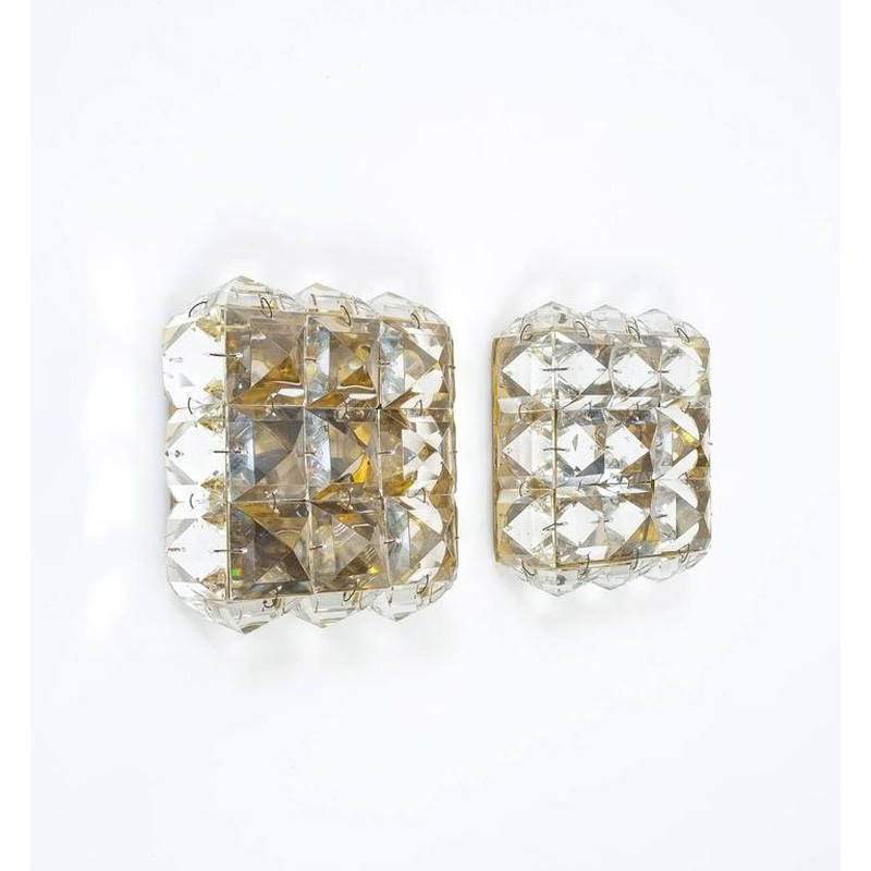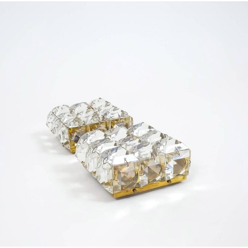 JR1963 ATLAS PAIR OF CRYSTAL GLASS AND BRASS SCONCES