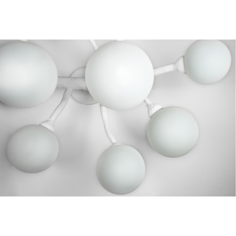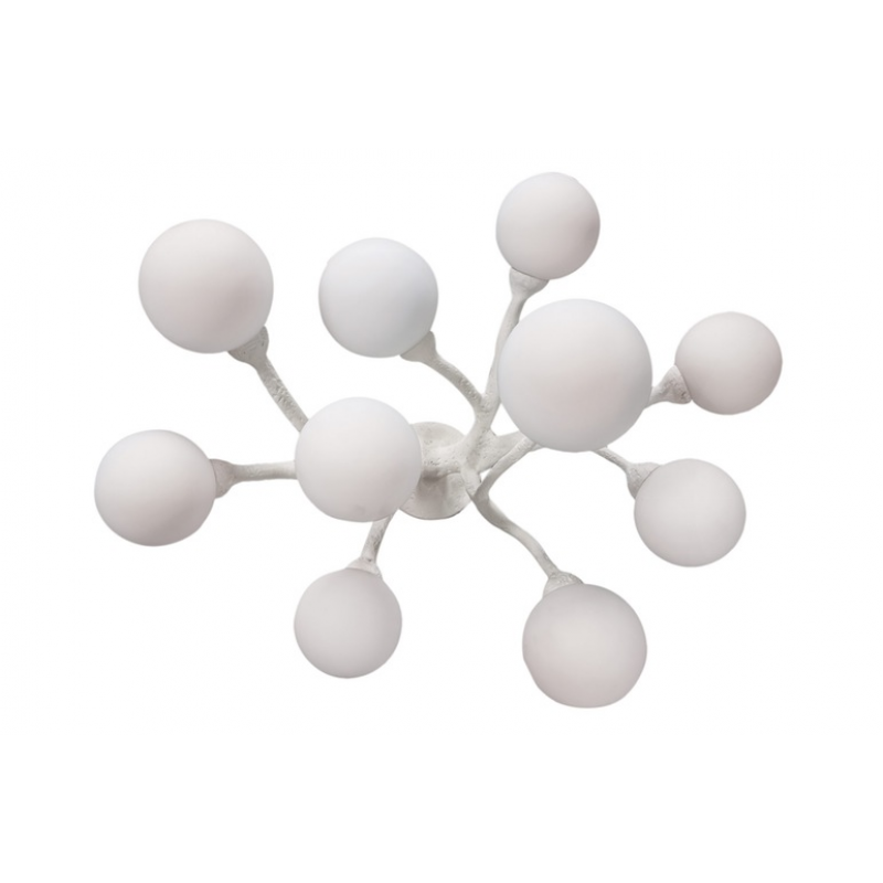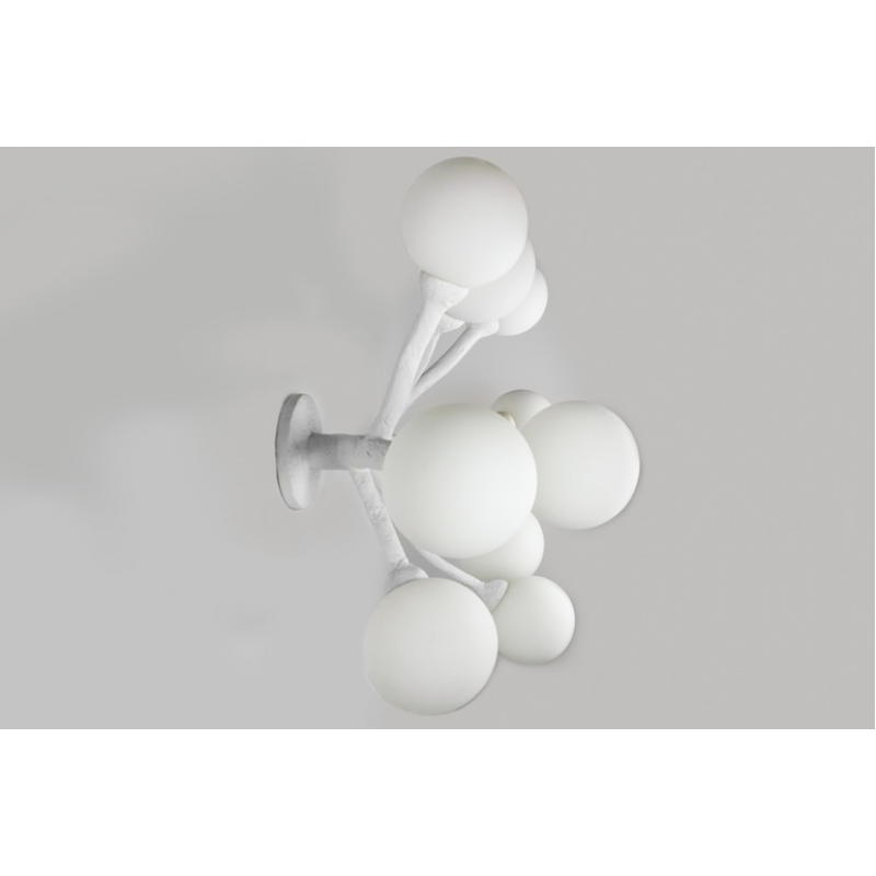 This whimsical sconce from our plaster lighting collection adds a unique lighting solution The texture of the plaster finish gives it an organic look while the 10 opaline diffusers provide generous soft light. We have also created a chandelier of the same style. They are customizable to meet your needs.The light uses 10 candelabra based bulbs, max wattage 60 each.